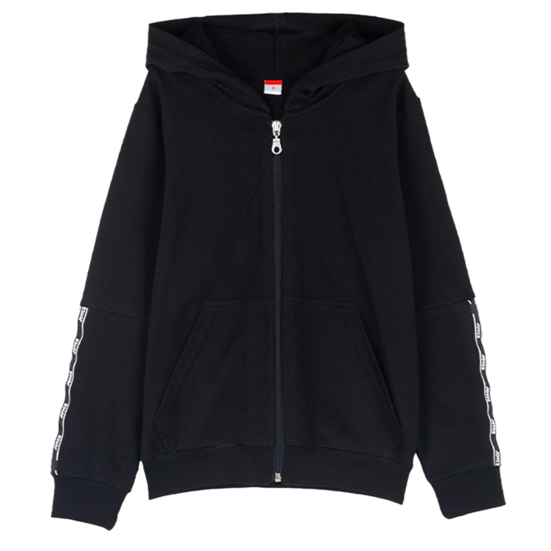 Αυτή αγορίστικη ζακέτα σε μαύρο χρώμα είναι η ιδανική επιλογή για ελαφριές και άνετες εμφανίσεις. Είναι κατασκευασμένη από βαμβακερό ύφασμα χωρίς χνούδι στο εσωτερικό, προσφέροντας δροσερή αίσθηση και ευελιξία στις κινήσεις. Η κουκούλα της προσθέτει επιπλέον προστασία από τον αέρα, ενώ το διαχρονικό σχέδιο της την καθιστά εύκολα συνδυάσιμη με κάθε ντύσιμο.