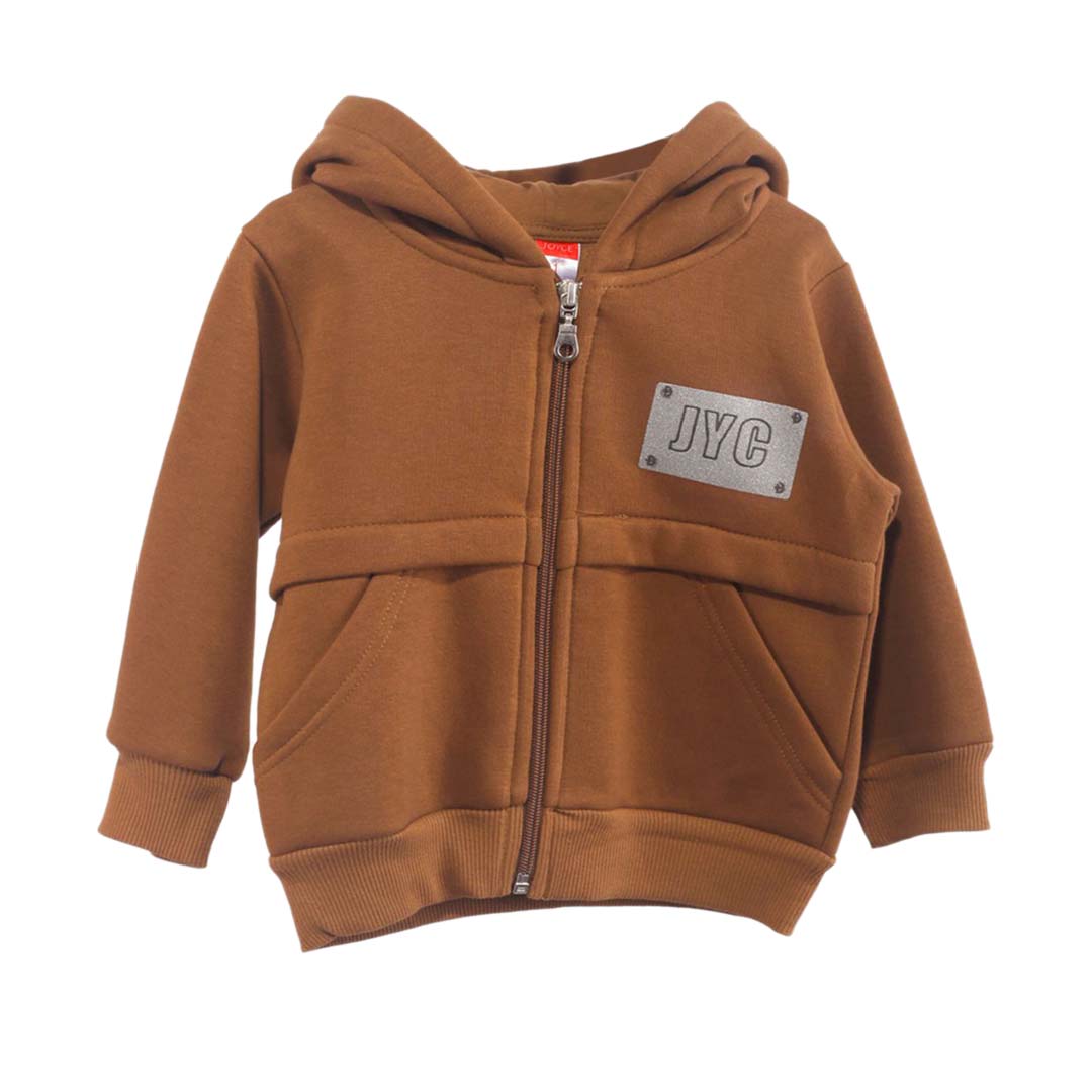 Αυτή η βαμβακερή αγορίστικη ζακέτα με κουκούλα σε καφέ χρώμα είναι η ιδανική επιλογή για τις κρύες ημέρες, συνδυάζοντας στυλ και ζεστασιά. Κατασκευασμένη από υψηλής ποιότητας βαμβάκι, διαθέτει εσωτερικό με χνούδι που προσφέρει άνεση και προστασία από το κρύο. Η κουκούλα της παρέχει επιπλέον κάλυψη, ενώ οι δύο μπροστινές τσέπες είναι πρακτικές για να κρατούν ζεστά τα χέρια ή να αποθηκεύουν μικροαντικείμενα.