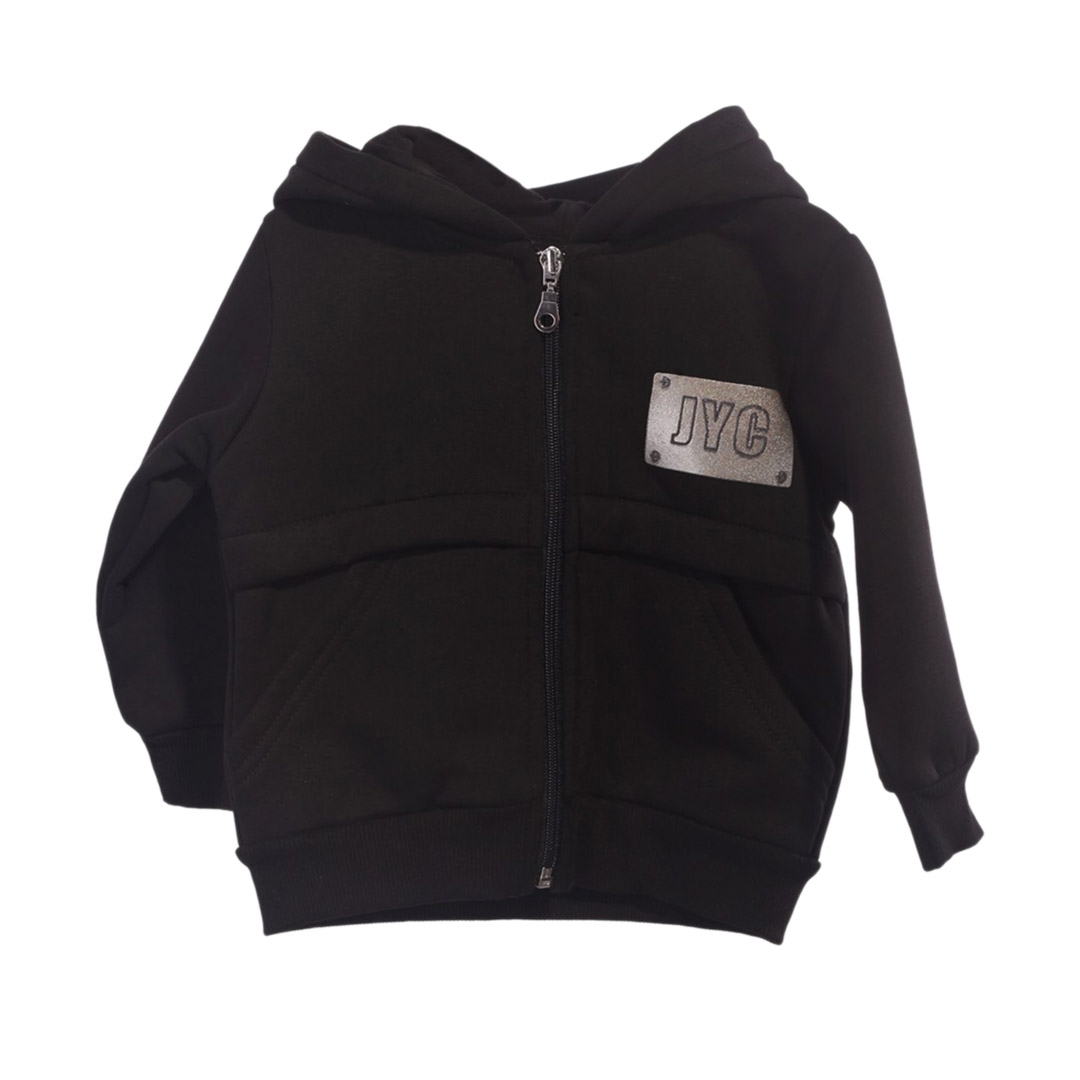 Αυτή η βαμβακερή αγορίστικη ζακέτα με κουκούλα σε μαύρο χρώμα είναι η ιδανική επιλογή για τις κρύες ημέρες, συνδυάζοντας στυλ και ζεστασιά. Κατασκευασμένη από υψηλής ποιότητας βαμβάκι, διαθέτει εσωτερικό με χνούδι που προσφέρει άνεση και προστασία από το κρύο. Η κουκούλα της παρέχει επιπλέον κάλυψη, ενώ οι δύο μπροστινές τσέπες είναι πρακτικές για να κρατούν ζεστά τα χέρια ή να αποθηκεύουν μικροαντικείμενα.