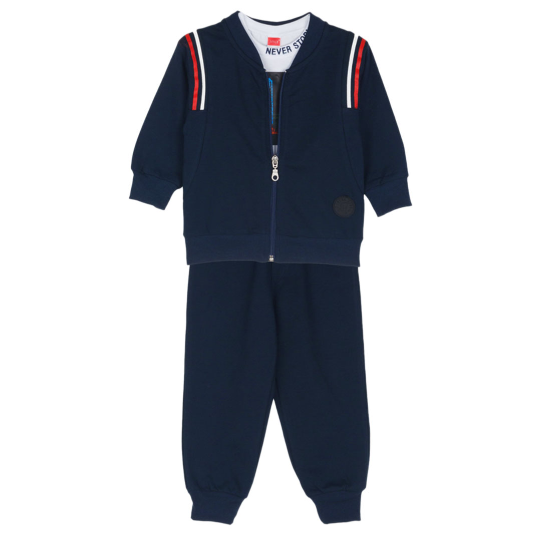 Σετ φόρμας από την εταιρία Joyce σε μπλε χρώμα κατάλληλο για καθημερινή χρήση. Αποτελείται από 3 τεμάχια ζακέτα, φόρμα και t-shirt και το κάθε μέρος αυτού μπορεί να φορεθεί και ξεχωριστά συνδυάζοντάς το με άλλα ρούχα από το ίδιο το παιδί κάνοντας έτσι το ντύσιμο παιχνίδι αλλά και δίνοντάς του τη δυνατότητα να λειτουργεί αυτόνομα μαθαίνοντας να ντύνεται με το δικό του στυλ. Επιπλέον, προσφέρει μεγαλύτερη άνεση και ευελιξία κινήσεων στο σχολείο και το παιχνίδι.