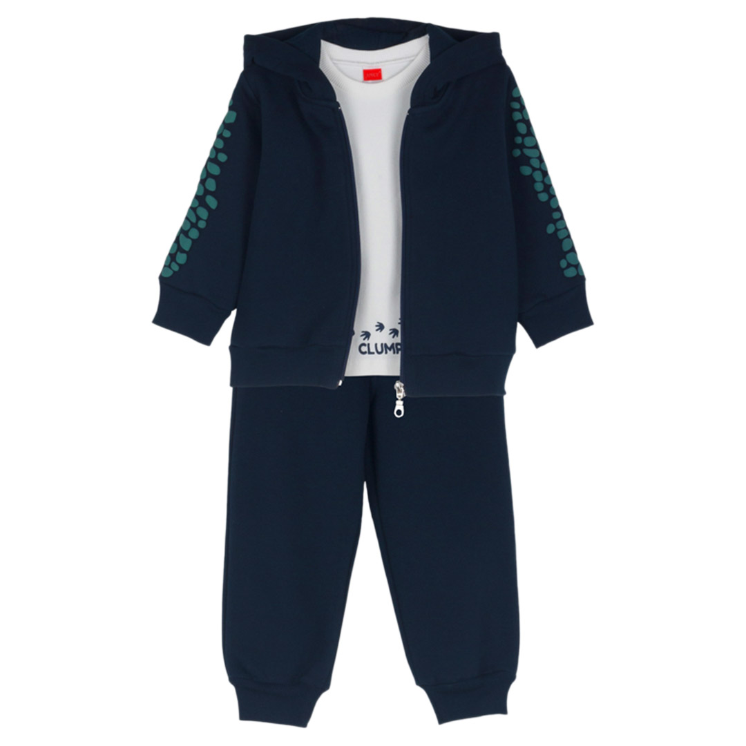 Αυτό το κομψό και πρακτικό αγορίστικο σετ 3 τεμαχίων σε μπλε χρώμα είναι η ιδανική επιλογή για καθημερινές δραστηριότητες αλλά και για πιο χαλαρές εξόδους. Το σετ περιλαμβάνει μια ζακέτα με κουκούλα, μια μακρυμάνικη μπλούζα και μια φόρμα με λάστιχο στο τελείωμα. Η ζακέτα είναι σχεδιασμένη για να προσφέρει άνεση και ζεστασιά, χάρη στο εσωτερικό χνούδι που διατηρεί τη θερμότητα τις πιο δροσερές μέρες. Το μακρυμάνικο μπλουζάκι, ελαφρύ και χωρίς χνούδι, είναι τέλειο για να φορεθεί είτε μόνο του είτε σε συνδυασμό με τη ζακέτα.