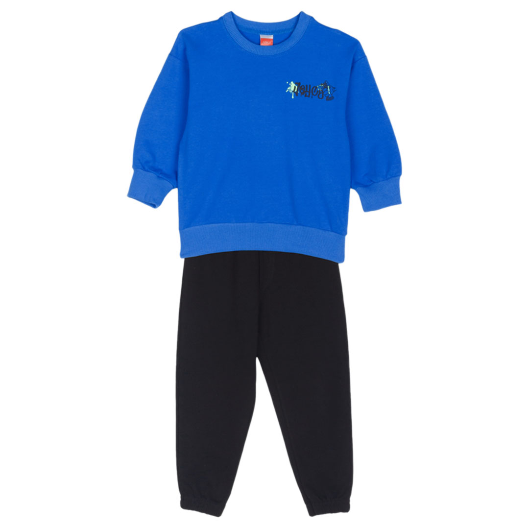 Η φόρμα διαθέτει λάστιχο τόσο στη μέση όσο και στο τελείωμά της, εξασφαλίζοντας σταθερή εφαρμογή και επιπλέον άνεση. Είναι ένα πρακτικό και μοντέρνο σετάκι, ιδανικό για παιχνίδι, βόλτες ή ακόμα και για πιο χαλαρές στιγμές στο σπίτι. Ένα άνετο σύνολο για κάθε μικρό αγόρι!