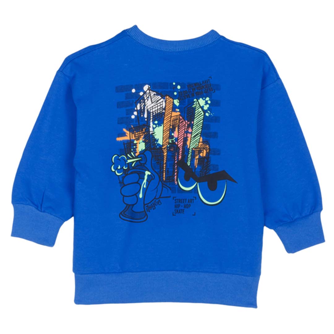 Αυτό το αγορίστικο βαμβακερό σετ χωρίς χνούδι σε μπλε ρουά χρώμα συνδυάζει άνεση και στυλ, ιδανικό για καθημερινές δραστηριότητες. Περιλαμβάνει μία μακρυμάνικη μπλούζα με απαλή υφή, προσφέροντας ελευθερία κινήσεων και άνετη εφαρμογή. Το ύφασμά του είναι ελαφρύ και αναπνεύσιμο, καθιστώντας το κατάλληλο για όλες τις ώρες της ημέρας.