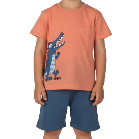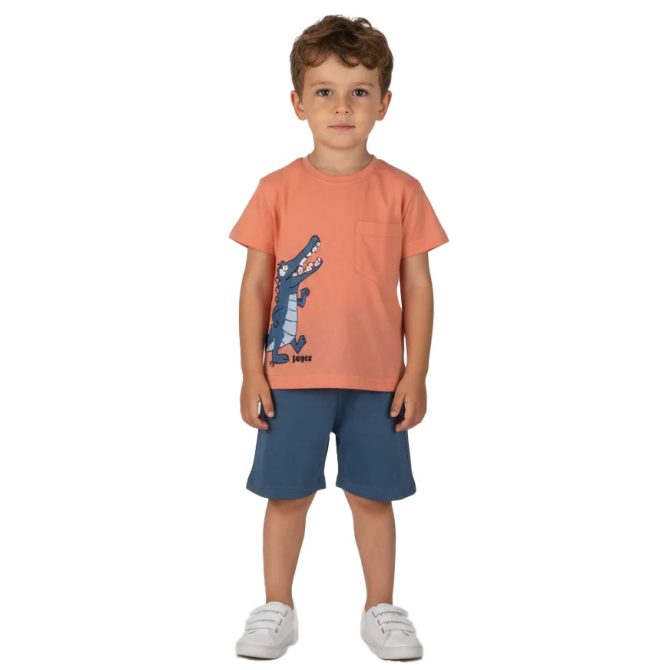Το παιδικό σετ Joyce είναι ιδανικό για αγόρια, αποτελούμενο από βαμβακερό t-shirt και βαμβακερή βερμούδα σε πορτοκαλί χρώμα. Αυτό το σετ επιτρέπει στα αγόρια να συμμετέχουν σε δραστηριότητες και παιχνίδια με άνεση, καθιστώντας το ιδανική επιλογή για το σχολείο.