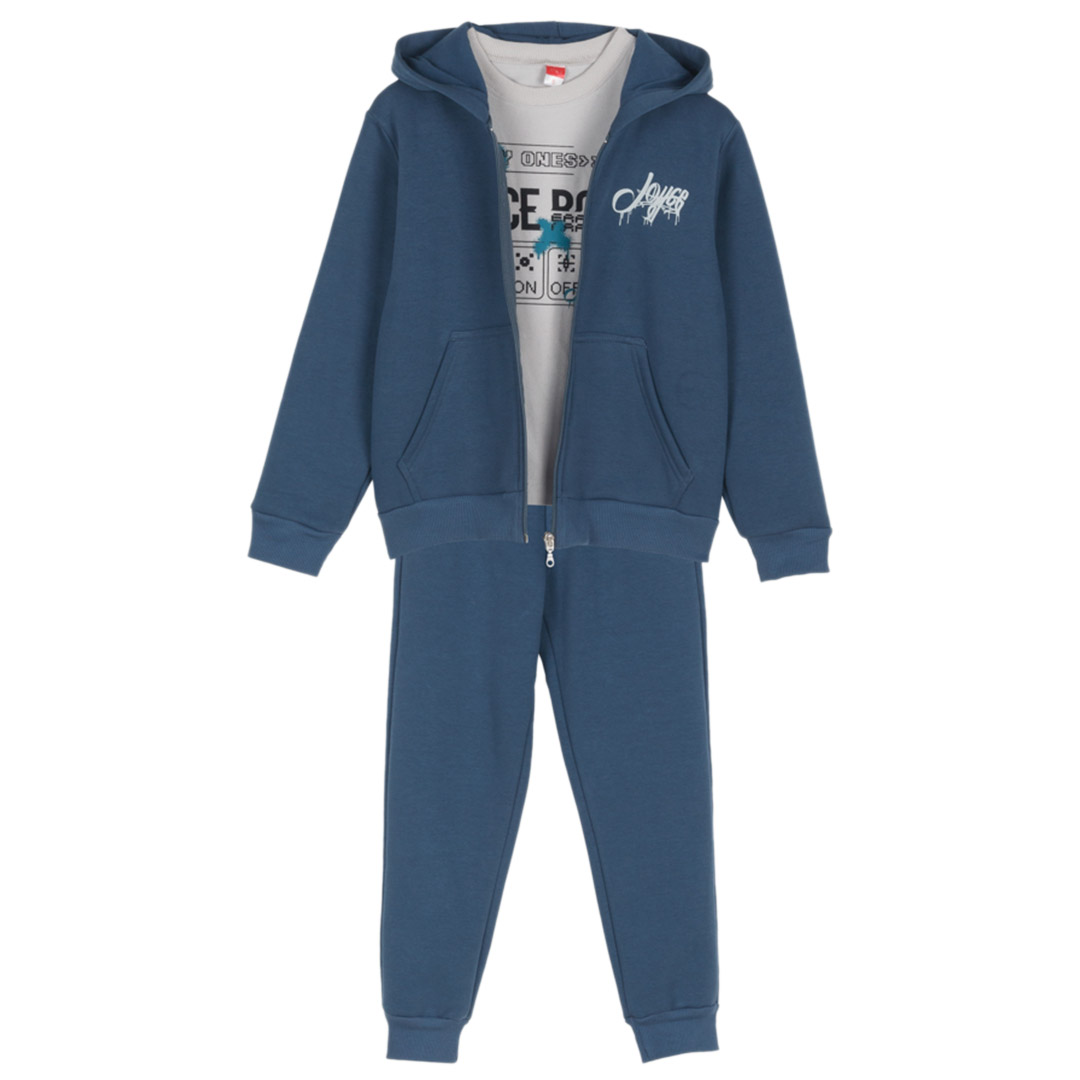 Το αγορίστικο σετ τριών τεμαχίων με χνούδι συνδυάζει άνεση και ζεστασιά για τις κρύες μέρες. Περιλαμβάνει μία ζακέτα με κουκούλα, δύο πλαϊνές τσέπες και εσωτερικό με χνούδι, που προσφέρει προστασία από το κρύο και πρακτικότητα. Το μακρυμάνικο μπλουζάκι χωρίς χνούδι είναι ιδανικό για άνεση και καθημερινή χρήση.
