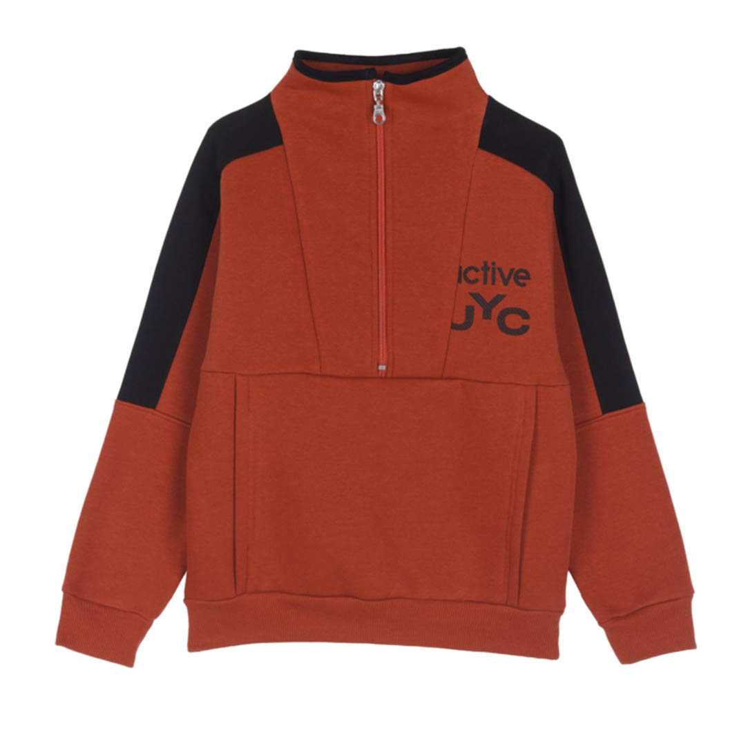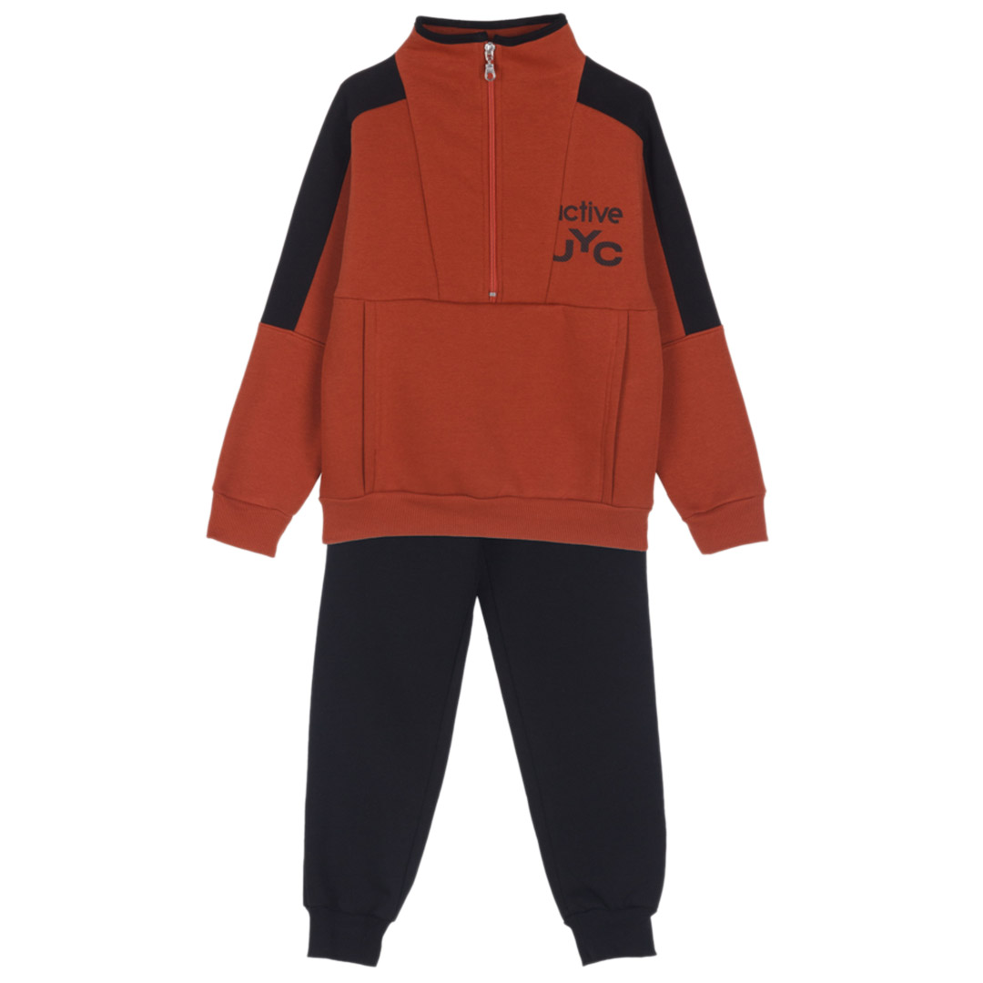 Αυτό το βαμβακερό αγορίστικο σετ σε πορτοκαλί χρώμα είναι η ιδανική επιλογή για ζεστές και άνετες εμφανίσεις στις κρύες ημέρες. Κατασκευασμένο από υψηλής ποιότητας βαμβάκι με εσωτερικό χνούδι, προσφέρει μοναδική αίσθηση απαλότητας και ζεστασιάς. Η μπλούζα διαθέτει ημίψηλο γιακά με φερμουάρ που ανοίγει μέχρι τη μέση, προσφέροντας ευκολία στο ντύσιμο και κομψή εμφάνιση. Οι τσέπες σε στιλ μάρσιπο όχι μόνο ενισχύουν το στυλ, αλλά και προσφέρουν πρακτικότητα για μικρά αντικείμενα.