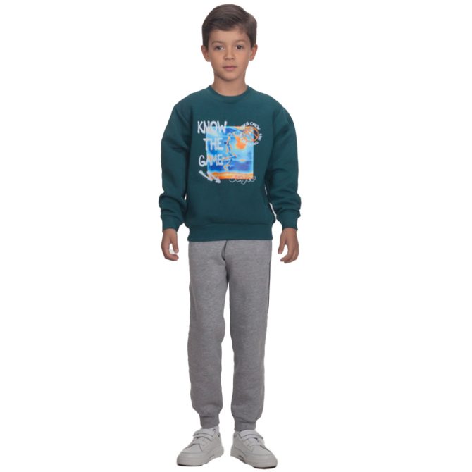 Αποτελείται από βαμβακερό φούτερ και ένα παντελόνι με λάστιχο στο τελείωμα, τα οποία μπορούν επίσης να φορεθούν χωριστά, προσφέροντας μεγαλύτερη ευελιξία στο ντύσιμο. Το σετ εξασφαλίζει άνεση και ευελιξία κινήσεων, ιδανικό για το σχολείο, τις δραστηριότητες και το παιχνίδι των παιδιών σας.