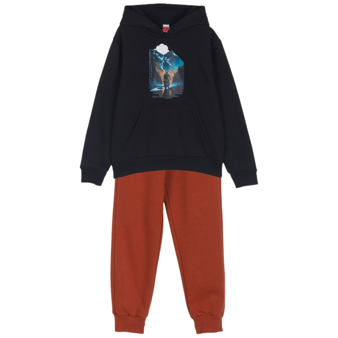 Αποτελείται από βαμβακερό φούτερ με κουκούλα και ένα παντελόνι με λάστιχο στο τελείωμα και 2 πλαϊνές τσέπες, τα οποία μπορούν επίσης να φορεθούν χωριστά, προσφέροντας μεγαλύτερη ευελιξία στο ντύσιμο. Το σετ εξασφαλίζει άνεση και ευελιξία κινήσεων, ιδανικό για το σχολείο, τις δραστηριότητες και το παιχνίδι των παιδιών σας.