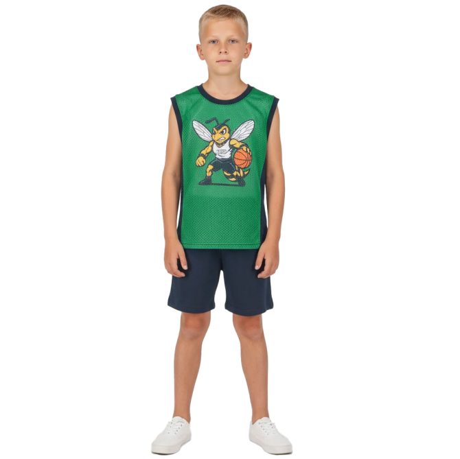 Αμάνικο παιδικό σετάκι σε πράσινο χρώμα ιδανικό για δραστήριες καλοκαιρινές εμφανίσεις, με αθλητικό χαρακτήρα και άνετη εφαρμογή. Αποτελείται από αμάνικη μπλούζα και σορτσάκι, προσφέροντας ελευθερία κινήσεων και δροσερή αίσθηση καθ’ όλη τη διάρκεια της ημέρας.