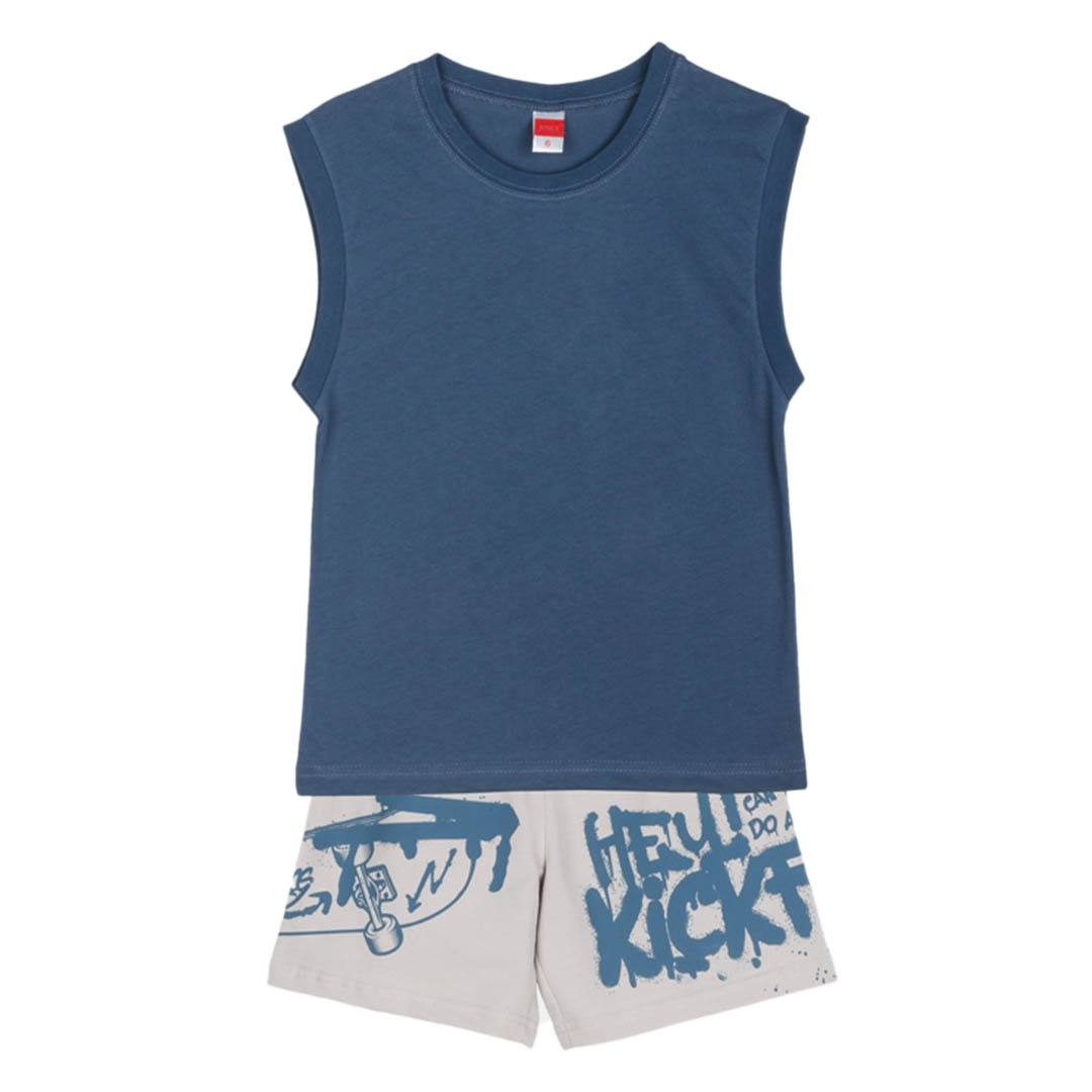 Αυτό το αγορίστικο σετ σε μπλε χρώμα είναι η ιδανική επιλογή για άνετες και δροσερές καλοκαιρινές εμφανίσεις. Αποτελείται από ένα αμάνικο μπλουζάκι που προσφέρει ελευθερία κινήσεων και δροσιά, ιδανικό για τις ζεστές μέρες. Το ύφασμά του είναι ελαφρύ και μαλακό, εξασφαλίζοντας άνεση όλη μέρα, είτε στις βόλτες είτε στο παιχνίδι.