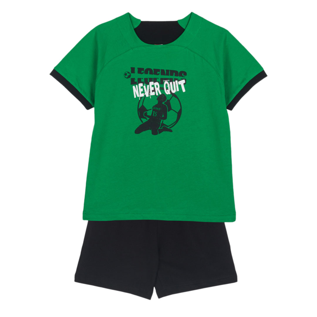 Το βαμβακερό αγορίστικο σετ σε πράσινο χρώμα από την εταιρία Joyce αποτελεί μια ιδανική και πρακτική επιλογή για το ντύσιμο των παιδιών σας κάθε μέρα. Αυτό το σετ αποτελείται από ένα βαμβακερό t-shirt και βερμούδα, προσφέροντας πλήρη άνεση και ευελιξία κατά τη διάρκεια των δραστηριοτήτων τους. Κατασκευασμένο από 100% βαμβάκι και ελληνικής κατασκευής, το σετ προσφέρει μια μαλακή αίσθηση στο δέρμα των παιδιών σας, ενώ η κανονική εφαρμογή του εξασφαλίζει ελευθερία κινήσεων και άνεση καθ’ όλη τη διάρκεια της ημέρας.