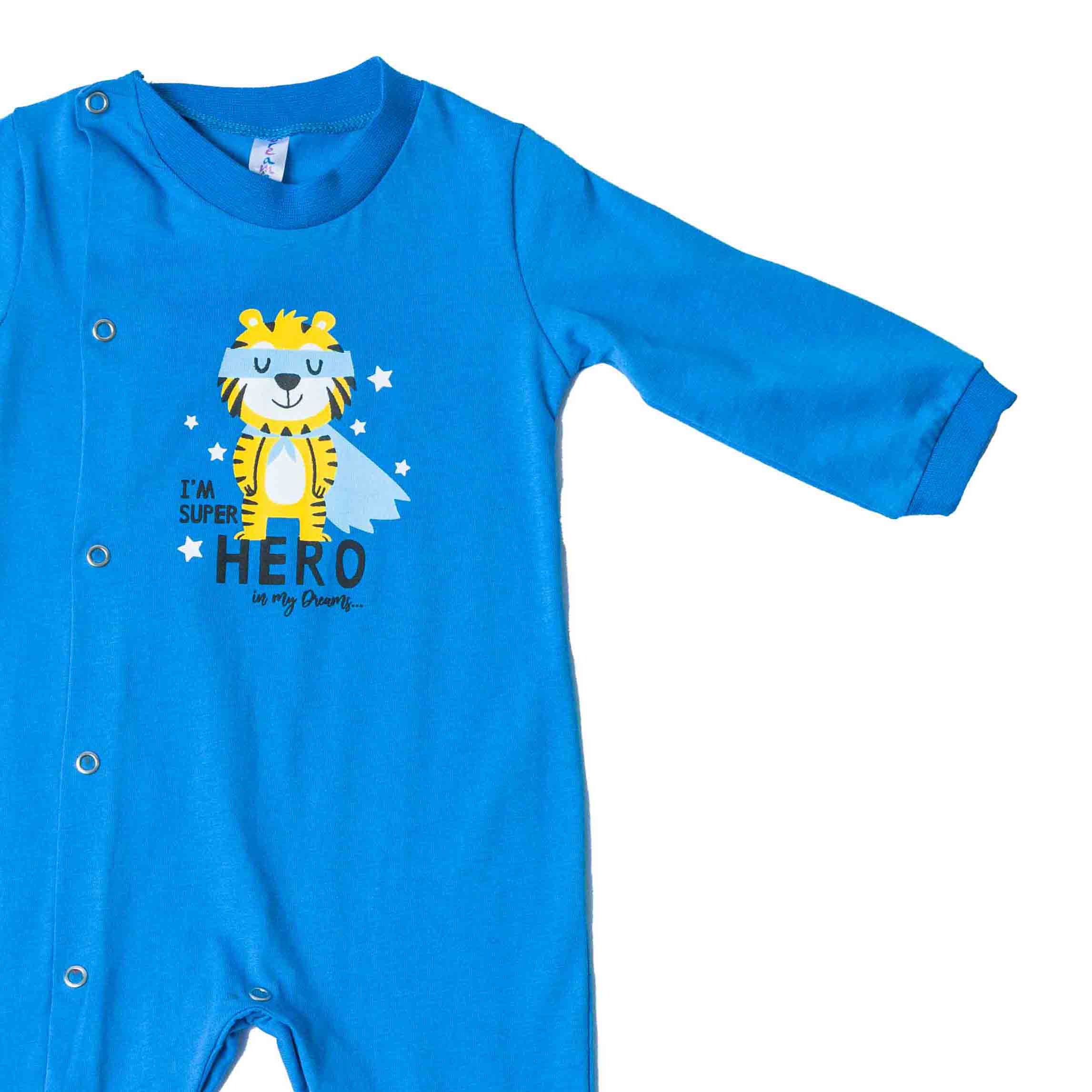 Το bebe βαμβακερό φορμάκι για αγόρι σε μπλε ρουά χρώμα από την ελληνική εταιρεία Dreams είναι η ιδανική επιλογή για τους μικρούς σας ήρωες. Κατασκευασμένο από 100% βαμβακερό ύφασμα, το φορμάκι δεν περιέχει χνούδι, προσφέροντας έτσι μια απαλή αίσθηση στο δέρμα των μωρών.