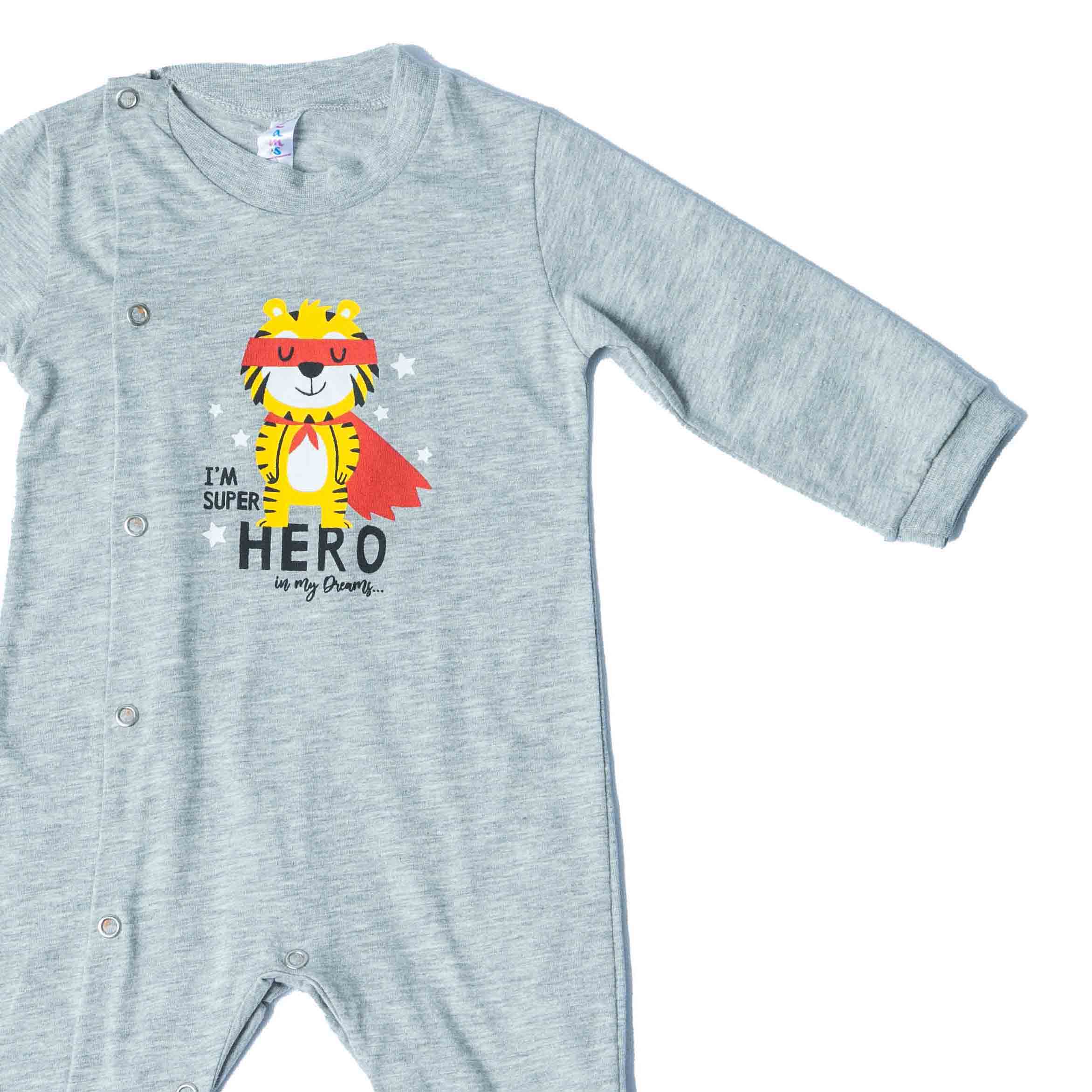 Το bebe βαμβακερό φορμάκι για αγόρι σε γκρι χρώμα από την ελληνική εταιρεία Dreams είναι η ιδανική επιλογή για τους μικρούς σας ήρωες. Κατασκευασμένο από 100% βαμβακερό ύφασμα, το φορμάκι δεν περιέχει χνούδι, προσφέροντας έτσι μια απαλή αίσθηση στο δέρμα των μωρών.