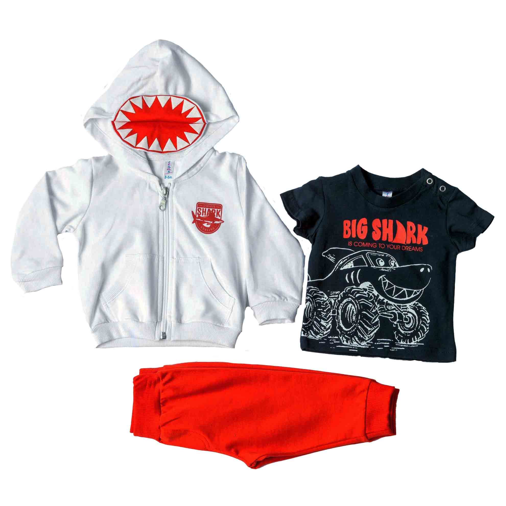 Το παιδικό σετ τριών τεμαχίων σε άσπρο χρώμα είναι ιδανικό για άνετες και πρακτικές καθημερινές εμφανίσεις. Είναι κατασκευασμένο από απαλό βαμβακερό ύφασμα, χωρίς χνούδι, προσφέροντας ελαφριά αίσθηση και άνεση καθ’ όλη τη διάρκεια της ημέρας. Το σετ περιλαμβάνει ζακέτα με φερμουάρ, παντελόνι φόρμας και κοντομάνικο μπλουζάκι, συνδυάζοντας λειτουργικότητα και ευκολία στην ένδυση.