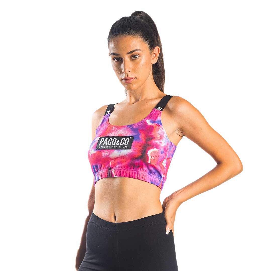 Μοντέρνο και άνετο μπουστάκι από βαμβακερό ύφασμα που αναπνέει, ιδανικό για καθημερινή χρήση και sporty εμφανίσεις. Διαθέτει λάστιχο για σταθερή εφαρμογή, φαρδιές τιράντες με λογότυπο για στυλ και υποστήριξη, καθώς και εντυπωσιακό πολύχρωμο print. Ένα κομμάτι που συνδυάζει άνεση και δυναμική streetwear αισθητική.