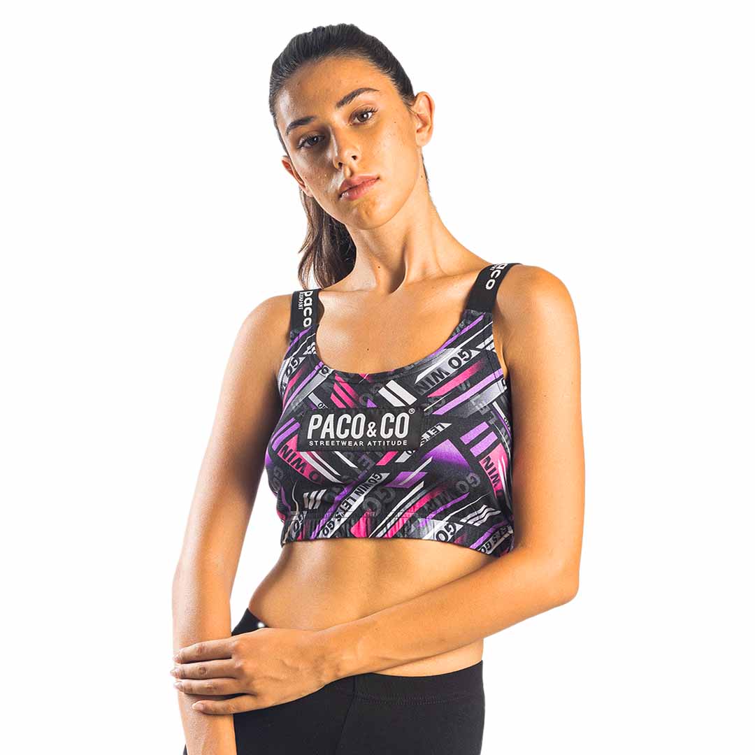 Μοντέρνο και άνετο μπουστάκι από βαμβακερό ύφασμα που αναπνέει, ιδανικό για καθημερινή χρήση και sporty εμφανίσεις. Διαθέτει λάστιχο για σταθερή εφαρμογή, φαρδιές τιράντες με λογότυπο για στυλ και υποστήριξη, καθώς και εντυπωσιακό πολύχρωμο print. Ένα κομμάτι που συνδυάζει άνεση και δυναμική streetwear αισθητική.