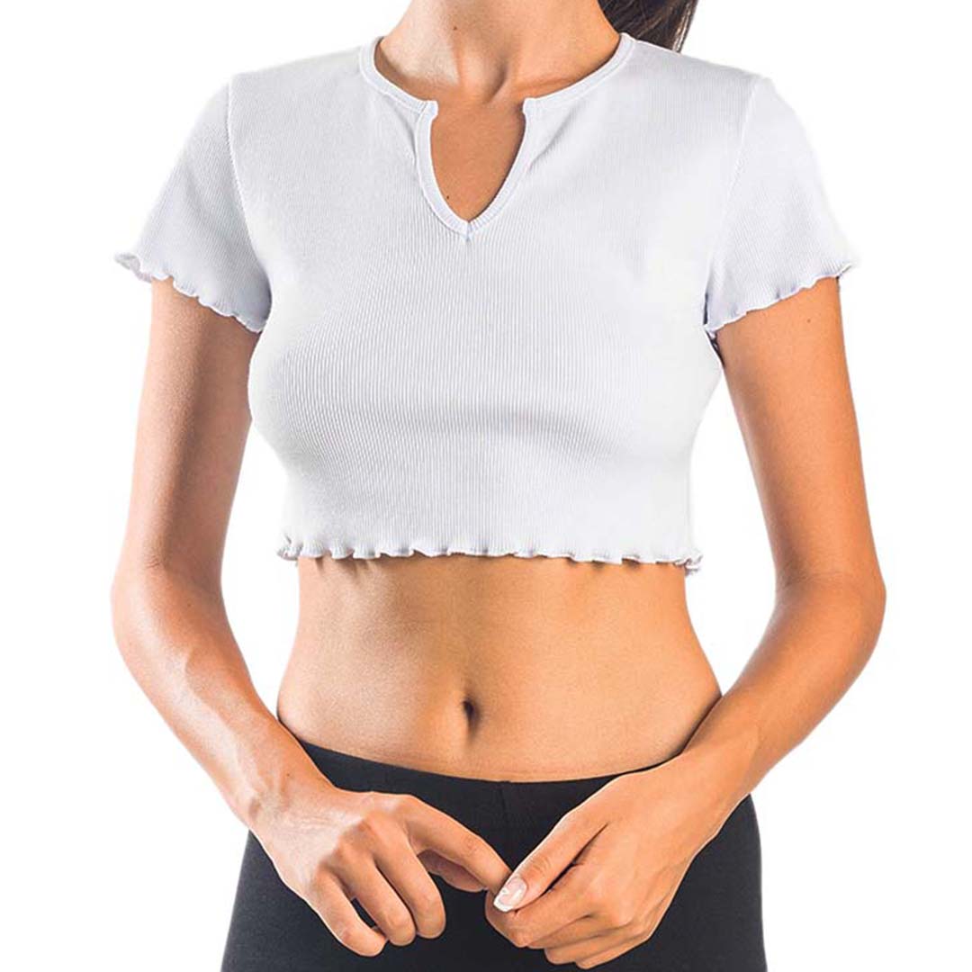 Γυναικείο βαμβακερό crop top με κοντά μανίκια και στρογγυλή λαιμόκοψη σε άσπρο χρώμα. Ελαφρύ και άνετο, προσφέρει ευκολία κινήσεων και μοντέρνο στιλ για όλες τις ώρες. Ιδανικό για casual εμφανίσεις ή για να συνδυαστεί με τζιν, σορτς ή κολάν, δημιουργώντας νεανικό και φρέσκο look.