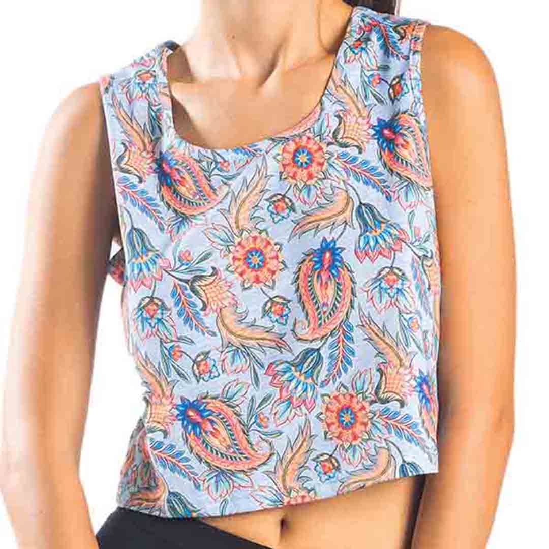 Αυτό το γυναικείο βαμβακερό crop top σε γαλάζιο χρώμα είναι η απόλυτη επιλογή για άνεση και στυλ στις καλοκαιρινές σας εμφανίσεις. Κατασκευασμένο από απαλό βαμβάκι, προσφέρει δροσερή αίσθηση και ευχάριστη εφαρμογή όλη μέρα. Το πολύχρωμο λουλουδάτο και paisley μοτίβο του χαρίζει μια παιχνιδιάρικη και θηλυκή πινελιά, κάνοντάς το ιδανικό για όσες αγαπούν τα εντυπωσιακά prints. Με άνετη γραμμή και μοντέρνο μήκος crop, συνδυάζεται τέλεια με ψηλόμεσα παντελόνια, σορτσάκια ή κολάν για μια stylish καθημερινή εμφάνιση. Ένα κομμάτι που δεν πρέπει να λείπει από την καλοκαιρινή γκαρνταρόμπα σας, ιδανικό για casual αλλά και πιο fashionable looks.