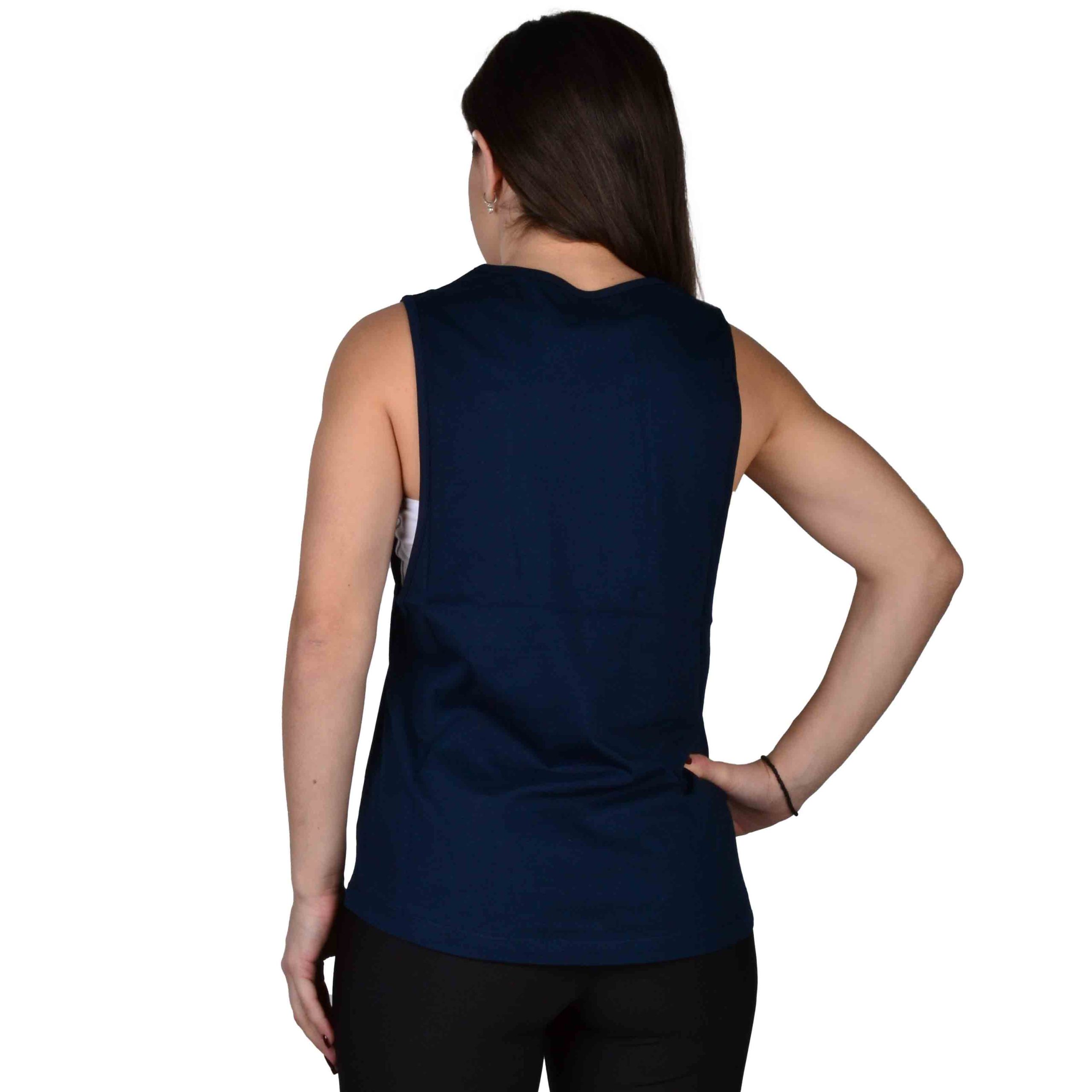 Αυτό το γυναικείο βαμβακερό αμάνικο t-shirt σε μπλε χρώμα συνδυάζει άνεση και στυλ με τον πιο δροσερό τρόπο. Κατασκευασμένο από απαλό βαμβάκι, χαρίζει ευχάριστη αίσθηση στο δέρμα και ιδανική εφαρμογή για τις ζεστές μέρες. Με άνετη γραμμή και μοντέρνο μήκος, ταιριάζει τέλεια με ψηλόμεσα παντελόνια, σορτσάκια ή κολάν. Ένα must-have κομμάτι για όσες αγαπούν τα παιχνιδιάρικα prints και την άνεση στην καθημερινότητά τους.