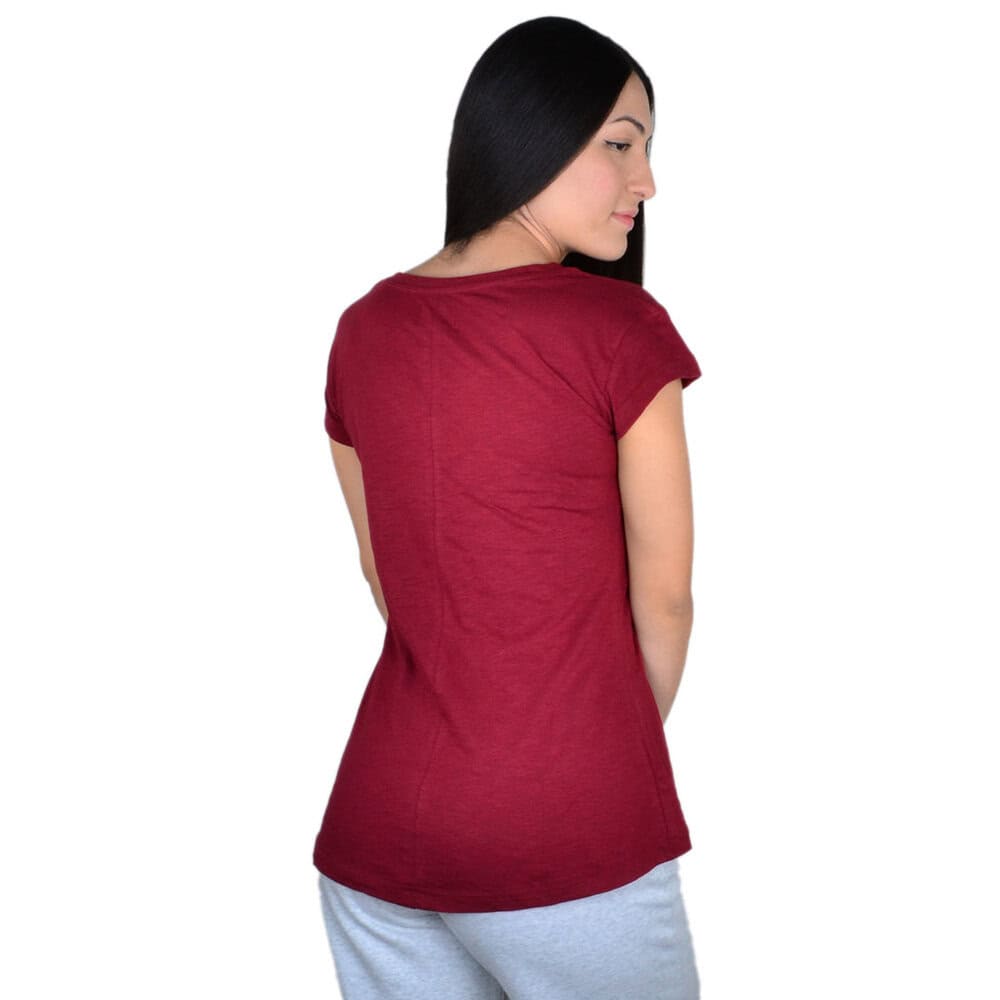 Το γυναικείο T-shirt της εταιρίας Paco & Co σε μπορντό χρώμα είναι ιδανικό για όλες τις ώρες καθώς συνδυάζεται εύκολα. Είναι 100% βαμβακερό, ελληνικής κατασκευής, με Ve λαιμόκοψη και μακρύ μήκος στο πίσω μέρος, προσφέροντας άνεση και στυλ.