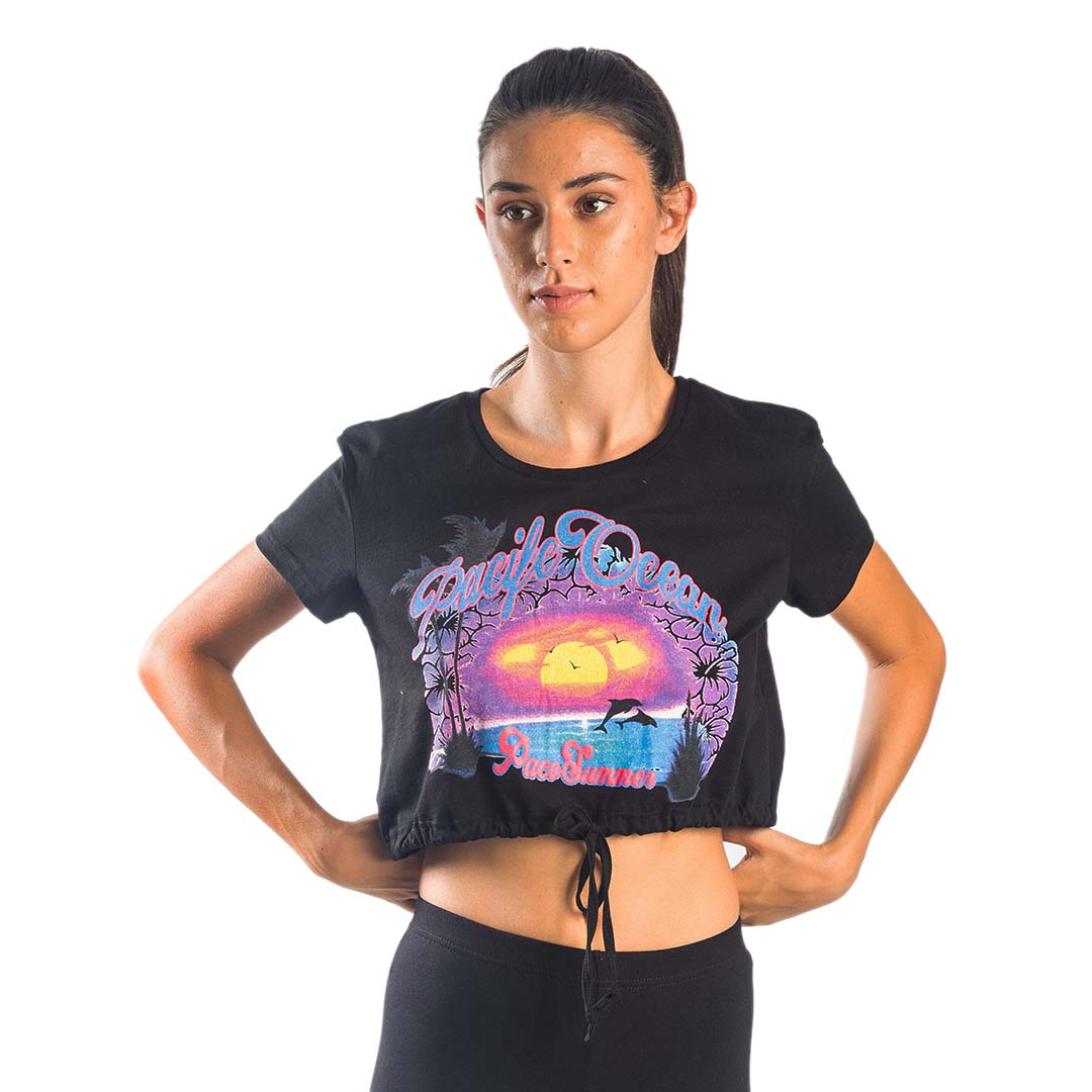 ΒΑΜΒΑΚΕΡΟ ΓΥΝΑΙΚΕΙΟ T-SHIRT CROP PACO OCEAN ΜΑΥΡΟ 13419