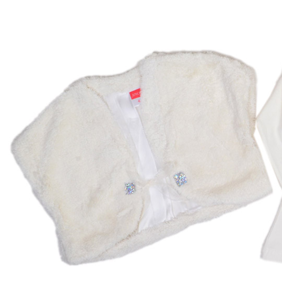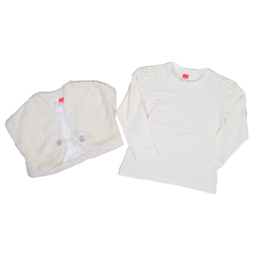 Αυτό το κοριτσίστικο σετ συνδυάζει κομψότητα και άνεση, ιδανικό για ξεχωριστές εμφανίσεις. Αποτελείται από ένα απαλό γούνινο μπολερό και μια βαμβακερή μακρυμάνικη μπλούζα, και τα δύο σε αρμονικό άσπρο χρώμα. Το γούνινο μπολερό χαρίζει μια αίσθηση πολυτέλειας και ζεστασιάς, ενώ η μακρυμάνικη μπλούζα εξασφαλίζει άνετη εφαρμογή και διακριτική κομψότητα.