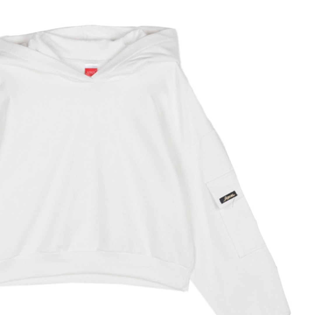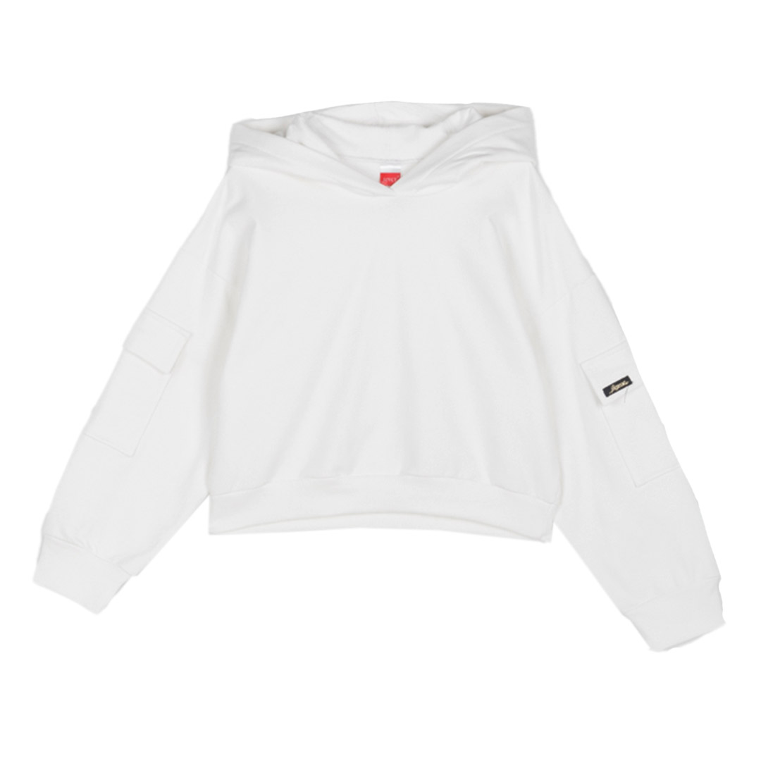 Αυτή η κοριτσίστικη βαμβακερή μπλούζα σε άσπρο χρώμα είναι η ιδανική επιλογή για άνεση και ζεστασιά τις πιο δροσερές ημέρες. Κατασκευασμένη από μαλακό βαμβάκι, διαθέτει εσωτερικό με χνούδι που χαρίζει απαλότητα και ευχάριστη αίσθηση στο δέρμα, κρατώντας ταυτόχρονα το παιδί ζεστό. Η πρακτική κουκούλα προσφέρει επιπλέον προστασία από το κρύο και τον άνεμο, ενώ προσθέτει και μία πιο μοντέρνα, αθλητική πινελιά στο ντύσιμο.