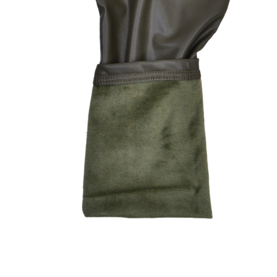 Αυτό το κοριτσίστικο μακρύ κολάν τύπου δερματίνης σε χακί χρώμα συνδυάζει στυλ και άνεση, αποτελώντας ιδανική επιλογή για τις κρύες ημέρες. Το εξωτερικό του από υλικό τύπου δερματίνης προσδίδει μια μοντέρνα και κομψή εμφάνιση, ενώ εφαρμόζει άψογα, ταιριάζοντας με διάφορα ρούχα, όπως πουλόβερ και φορέματα.