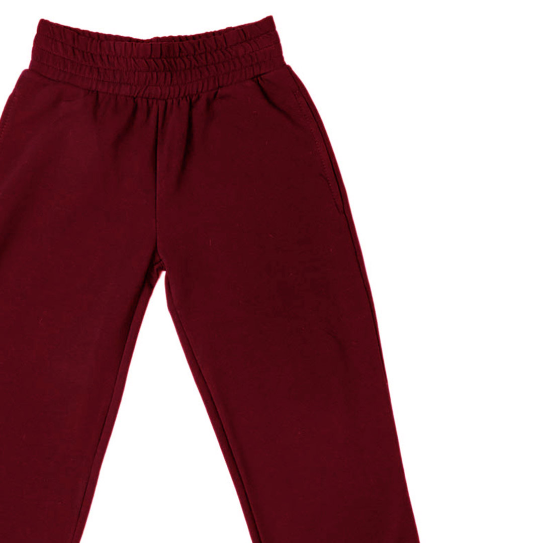 Αυτή η κοριτσίστικη βαμβακερή φόρμα σε μπορντό χρώμα είναι η ιδανική επιλογή για ζεστές και άνετες εμφανίσεις κατά τη διάρκεια των κρύων ημερών. Κατασκευασμένη από υψηλής ποιότητας βαμβακερό ύφασμα, διαθέτει χνούδι στο εσωτερικό της που προσφέρει εξαιρετική αίσθηση απαλότητας και διατηρεί τη θερμότητα του σώματος. Το τελείωμα της με λάστιχο εξασφαλίζει σταθερή εφαρμογή και άνεση, κάνοντάς την ιδανική για παιχνίδι και καθημερινές δραστηριότητες.