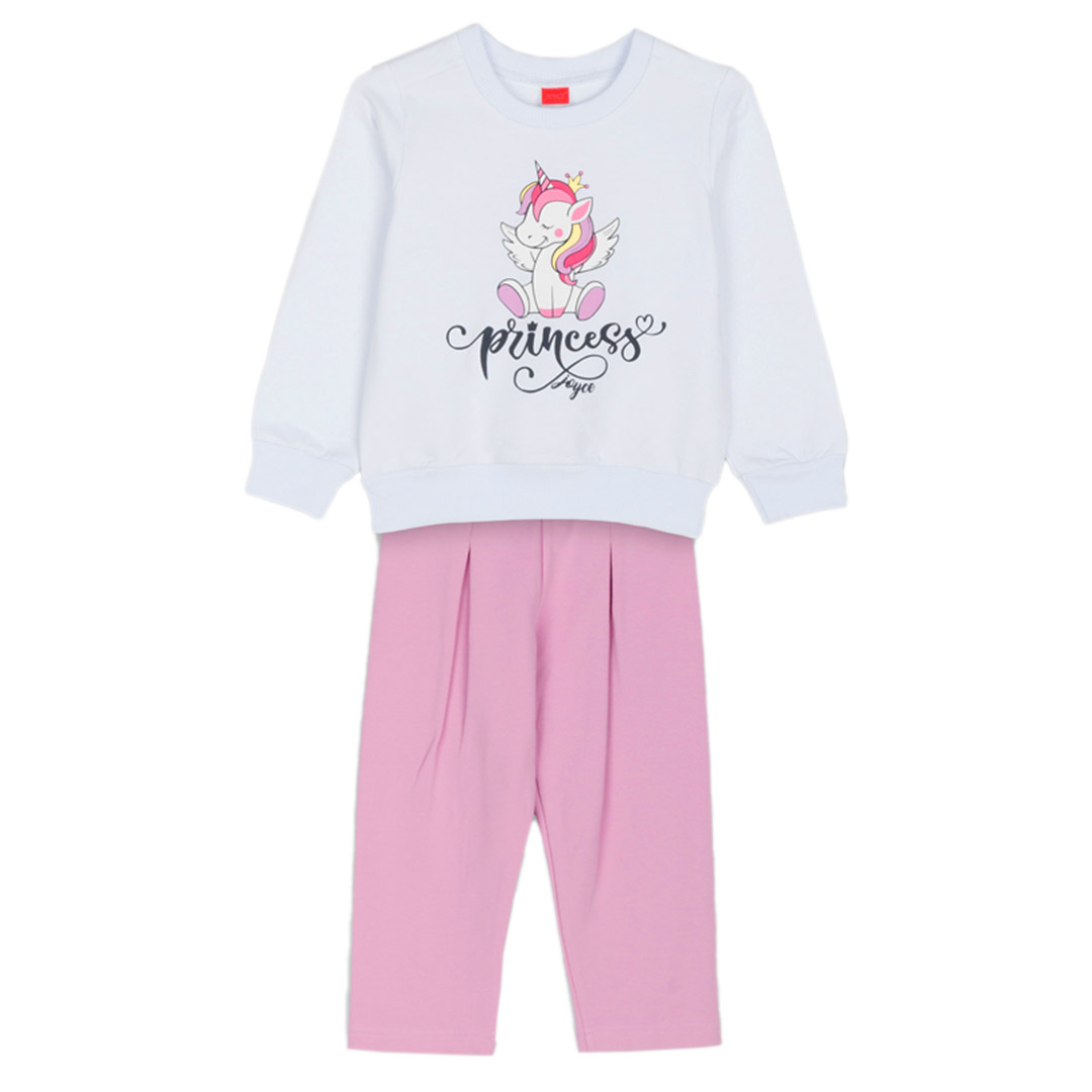 Παιδικό βαμβακερό κοριτσίστικο σετ με φόρμα Joyce, χωρίς χνούδι στο εσωτερικό μέρος. Διαθέσιμο για κορίτσια από ένα έως πέντε ετών σε άσπρο χρώμα. Αυτό το σετ δεν είναι απλώς ένα ρούχο, είναι ένα απόλυτο must-have για καθημερινή χρήση, προσφέροντας απόλυτη άνεση και ελευθερία κινήσεων για τα μικρά σας αγγελούδια.