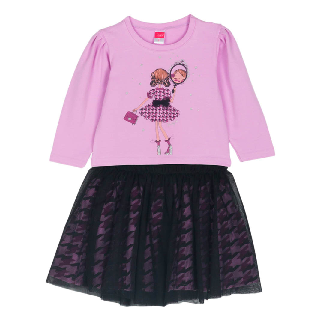 Η βαμβακερή φούστα του σετ ξεχωρίζει χάρη στην εξωτερική επένδυσή της από αέρινο τούλι, που της δίνει μια παιχνιδιάρικη και κομψή εμφάνιση. Το ελαφρύ και μαλακό ύφασμά της επιτρέπει άνεση στην κίνηση, ενώ η φαρδιά γραμμή της την κάνει ιδανική για καθημερινές αλλά και πιο ιδιαίτερες περιστάσεις. Ο συνδυασμός του βαμβακιού με το τούλι δημιουργεί ένα όμορφο και μοντέρνο αποτέλεσμα, που ταιριάζει σε κάθε μικρή fashionista.
