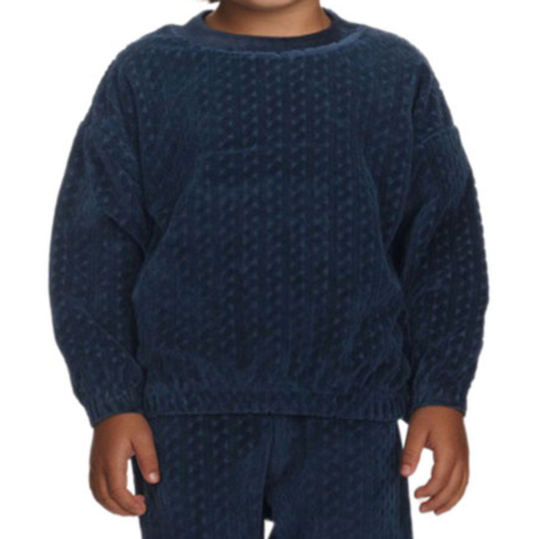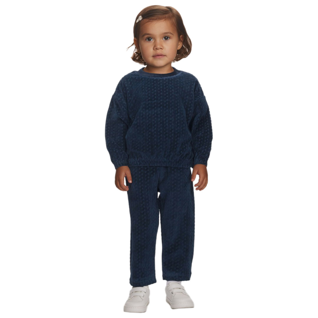 Αυτό το κοριτσίστικο βελούδινο σετ σε μπλε χρώμα συνδυάζει άνεση και στυλ, ιδανικό για κάθε περίσταση. Αποτελείται από μια απαλή μπλούζα που προσφέρει ζεστασιά και μοντέρνα εμφάνιση. Η χαλαρή εφαρμογή της επιτρέπει άνεση στην κίνηση, ενώ το πολυτελές βελούδινο ύφασμα χαρίζει μια ξεχωριστή αίσθηση απαλότητας.