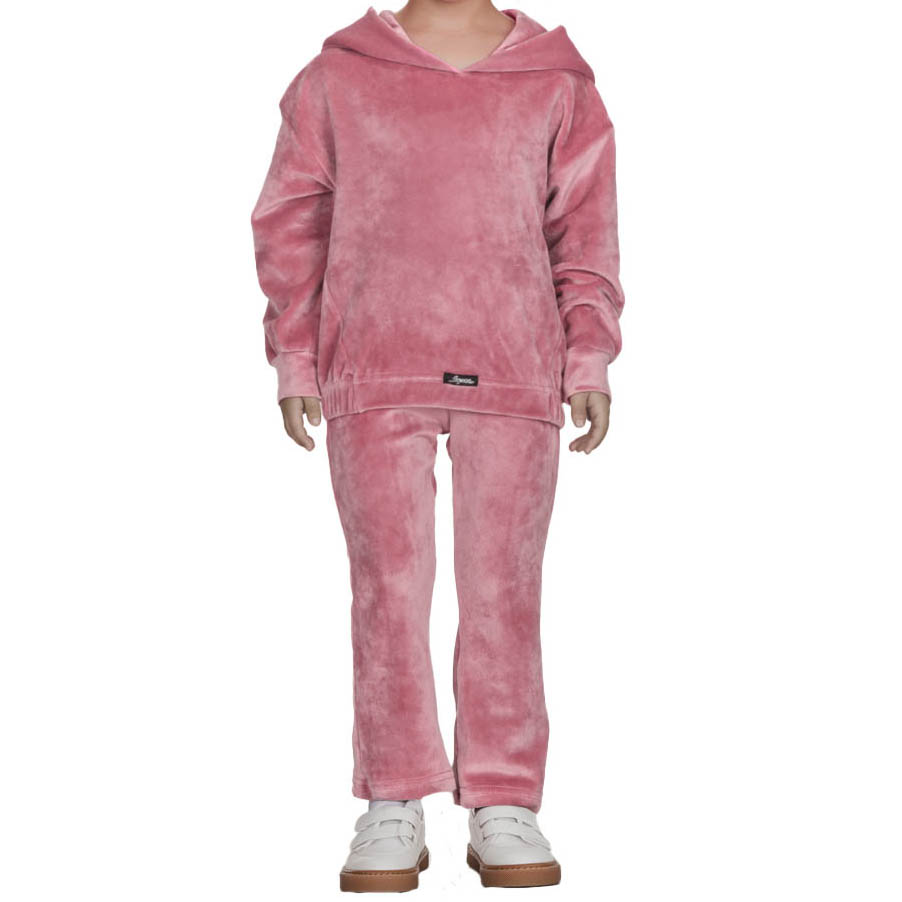 Αυτό το κοριτσίστικο βελούδινο σετ σε σάπιο μήλο χρώμα συνδυάζει άνεση και στυλ, ιδανικό για κάθε περίσταση. Αποτελείται από μια απαλή μπλούζα με κουκούλα που προσφέρει ζεστασιά και μοντέρνα εμφάνιση. Η χαλαρή εφαρμογή της επιτρέπει άνεση στην κίνηση, ενώ το πολυτελές βελούδινο ύφασμα χαρίζει μια ξεχωριστή αίσθηση απαλότητας.