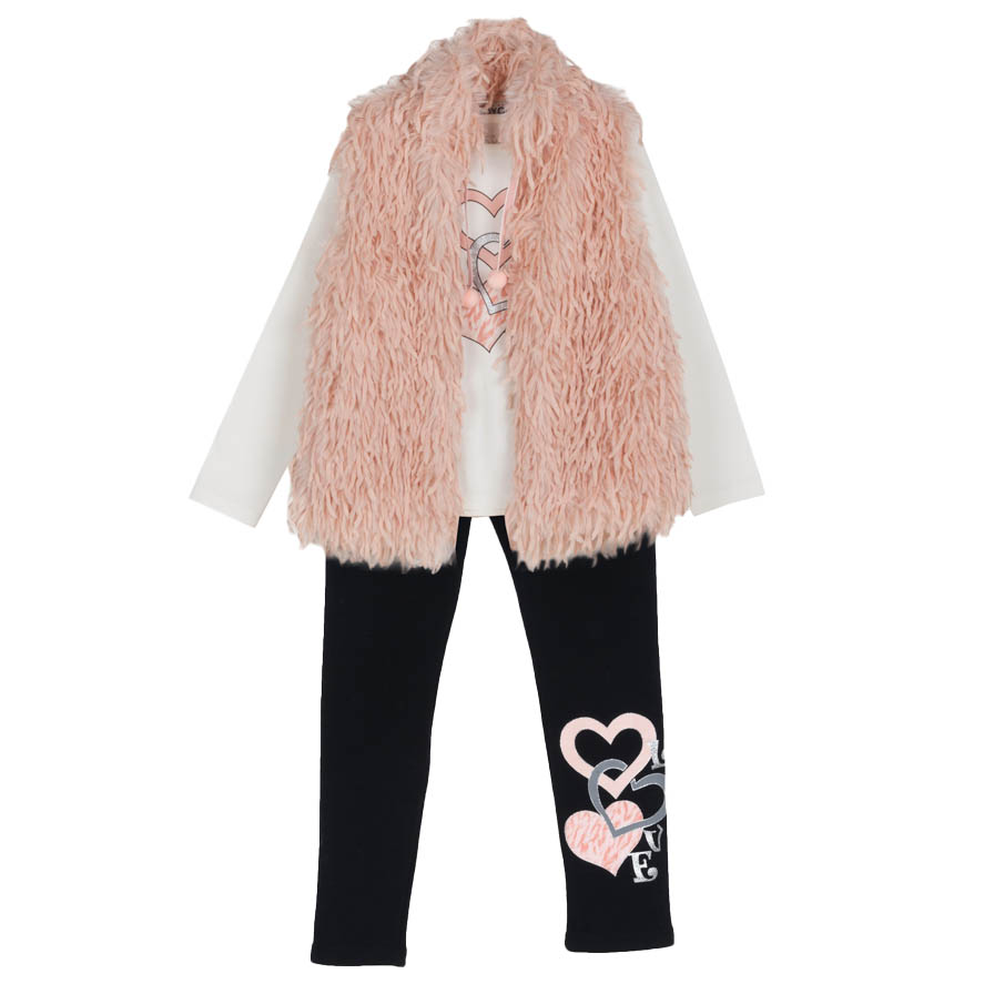Αυτό το σετάκι για κορίτσι σε ροζ χρώμα συνδυάζει ζεστασιά και άνεση, ιδανικό για τις κρύες ημέρες. Περιλαμβάνει ένα γούνινο αμάνικο , που προσφέρει απαλή αίσθηση και ζεστασιά. Συνοδεύεται από ένα κολάν με χνούδι, το οποίο εξασφαλίζει ζεστασιά, άνεση και ελευθερία κινήσεων. Το σετ ολοκληρώνεται με ένα βαμβακερό μακρυμάνικο μπλουζάκι χωρίς χνούδι, ιδανικό για καθημερινή χρήση, καθώς προσφέρει απαλότητα και άνετη εφαρμογή. Αυτό το σετάκι είναι η τέλεια επιλογή για κάθε δραστηριότητα, εξασφαλίζοντας στυλ και πρακτικότητα.
