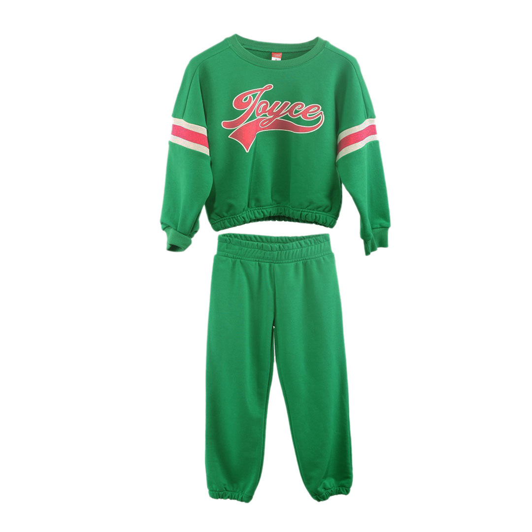 Το κοριτσίστικο σετ σε πράσινο χρώμα της ελληνικής εταιρείας Joyce είναι η ιδανική επιλογή για τις κρύες ημέρες του χειμώνα. Κατασκευασμένο από βαμβάκι, το σετ προσφέρει εξαιρετική άνεση και ζεστασιά χάρη στο εσωτερικό του χνούδι. Το σετ περιλαμβάνει φούτερ μπλούζα και παντελόνι φόρμας με λάστιχο στο τελείωμα για τέλεια εφαρμογή και ευκολία στην κίνηση. Η κανονική γραμμή του το κάνουν εύκολο να συνδυαστεί με κάθε look.