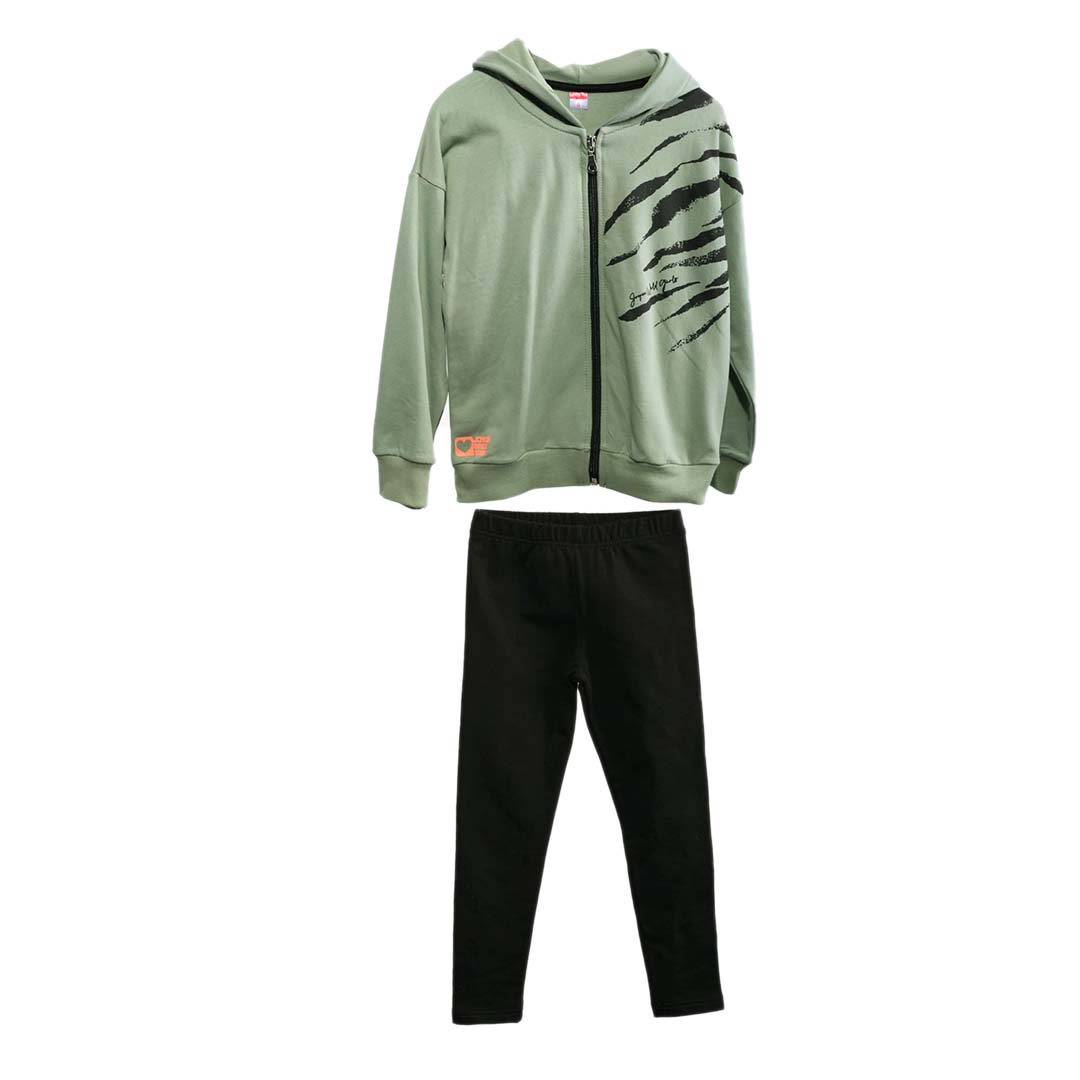 Αυτό το κοριτσίστικο βαμβακερό σετ σε φυστικί χρώμα, που περιλαμβάνει μια ζακέτα με κουκούλα και ένα κολάν, είναι η ιδανική επιλογή για άνετες και ζεστές εμφανίσεις. Το εσωτερικό του διαθέτει απαλό χνούδι, προσφέροντας ζεστασιά και προστασία από το κρύο. Η ζακέτα έχει πρακτική κουκούλα για επιπλέον κάλυψη, ενώ το φερμουάρ μπροστά εξασφαλίζει ευκολία στη χρήση. Το κολάν αγκαλιάζει άνετα το σώμα, επιτρέποντας ελευθερία κινήσεων όλη την ημέρα.