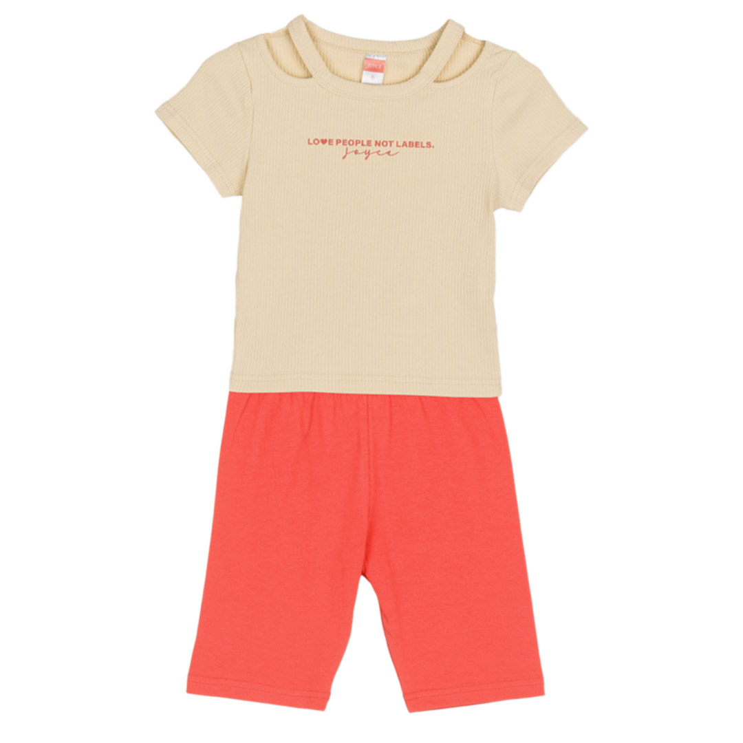 Αυτό το κοριτσίστικο βαμβακερό σετ σε μπεζ χρώμα συνδυάζει άνεση και μοντέρνο στυλ, ιδανικό για καθημερινές εμφανίσεις. Αποτελείται από ένα κοντομάνικο μπλουζάκι με απαλή υφή, που χαρίζει δροσερή αίσθηση και ελευθερία κινήσεων, ιδανικό για τις ζεστές μέρες.