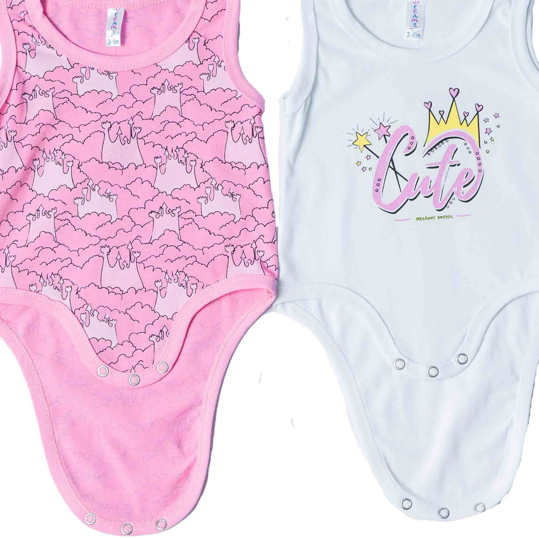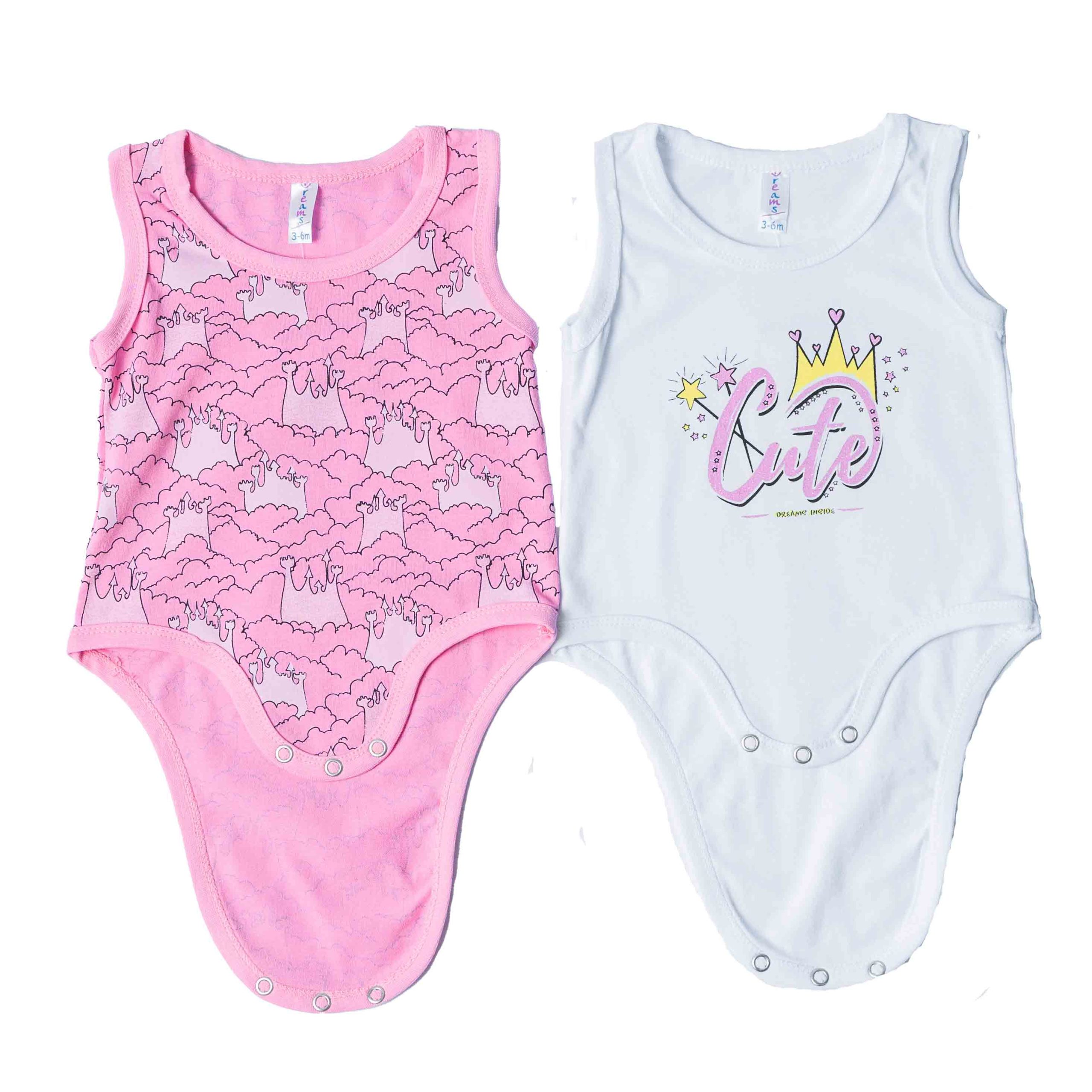Σετ από βαμβακερά αμάνικα βρεφικά ζιπουνάκια σε άσπρο και ροζ χρώμα, σχεδιασμένα για άνεση και πρακτικότητα στις καθημερινές στιγμές του μωρού. Κατασκευασμένα από απαλό, φιλικό προς το ευαίσθητο βρεφικό δέρμα βαμβάκι, προσφέρουν σωστή διαπνοή και άνετη εφαρμογή. Διαθέτουν χαριτωμένα σχέδια και παιχνιδιάρικα χρώματα, ενώ το κούμπωμα με τρουκς στο κάτω μέρος διευκολύνει την αλλαγή πάνας. Ιδανικά για τους ζεστούς μήνες, φοριούνται μόνα τους ή ως εσώρουχο, αποτελώντας βασικό κομμάτι της βρεφικής γκαρνταρόμπας.