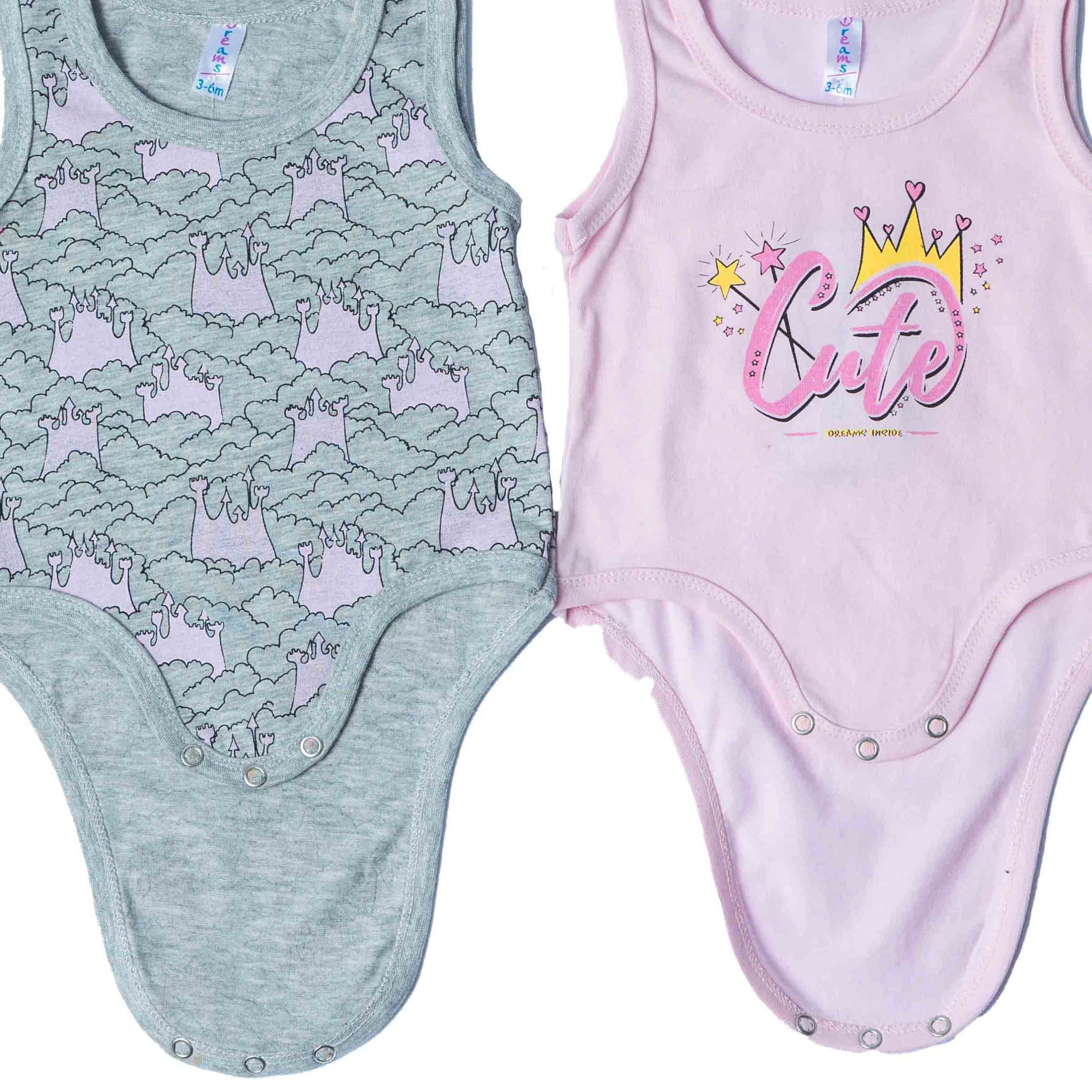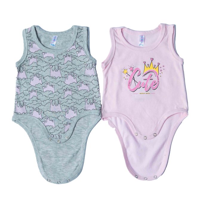 Σετ από βαμβακερά αμάνικα βρεφικά ζιπουνάκια σε ροζ και γκρι χρώμα, σχεδιασμένα για άνεση και πρακτικότητα στις καθημερινές στιγμές του μωρού. Κατασκευασμένα από απαλό, φιλικό προς το ευαίσθητο βρεφικό δέρμα βαμβάκι, προσφέρουν σωστή διαπνοή και άνετη εφαρμογή. Διαθέτουν χαριτωμένα σχέδια και παιχνιδιάρικα χρώματα, ενώ το κούμπωμα με τρουκς στο κάτω μέρος διευκολύνει την αλλαγή πάνας. Ιδανικά για τους ζεστούς μήνες, φοριούνται μόνα τους ή ως εσώρουχο, αποτελώντας βασικό κομμάτι της βρεφικής γκαρνταρόμπας.