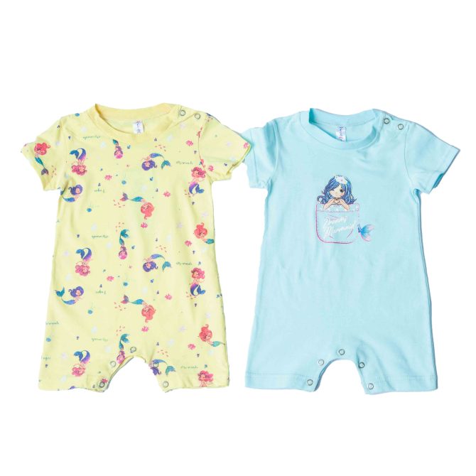 Σετ από βαμβακερά βρεφικά φορμάκια σε γαλάζιο και κίτρινο χρώμα, σχεδιασμένα για άνεση και πρακτικότητα στις καθημερινές στιγμές του μωρού. Κατασκευασμένα από απαλό, φιλικό προς το ευαίσθητο βρεφικό δέρμα βαμβάκι, προσφέρουν σωστή διαπνοή και άνετη εφαρμογή. Διαθέτουν χαριτωμένα σχέδια και παιχνιδιάρικα χρώματα, ενώ το κούμπωμα με τρουκς στο κάτω και στο επάνω μέρος διευκολύνει την αλλαγή πάνας. Ιδανικά για τους ζεστούς μήνες, φοριούνται μόνα τους ή ως εσώρουχο, αποτελώντας βασικό κομμάτι της βρεφικής γκαρνταρόμπας.