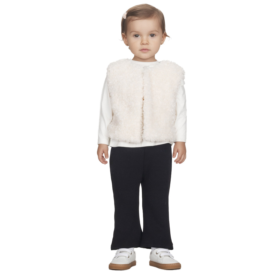 Αυτό το χαριτωμένο βρεφικό σετάκι για κορίτσι σε άσπρο χρώμα προσφέρει ζεστασιά και άνεση, ιδανικό για τις κρύες ημέρες. Το σετ αποτελείται από αμάνικο μπουφανάκι τύπου sherpa(προβατάκι) , που προσφέρει απαλότητα και προστασία από το κρύο, εξασφαλίζοντας ότι το μικρό σας θα είναι πάντα ζεστό και άνετο. Συνδυάζεται τέλεια με την μακριά φόρμα καμπάνα με χνούδι, η οποία προσφέρει άνεση και ελευθερία κινήσεων.