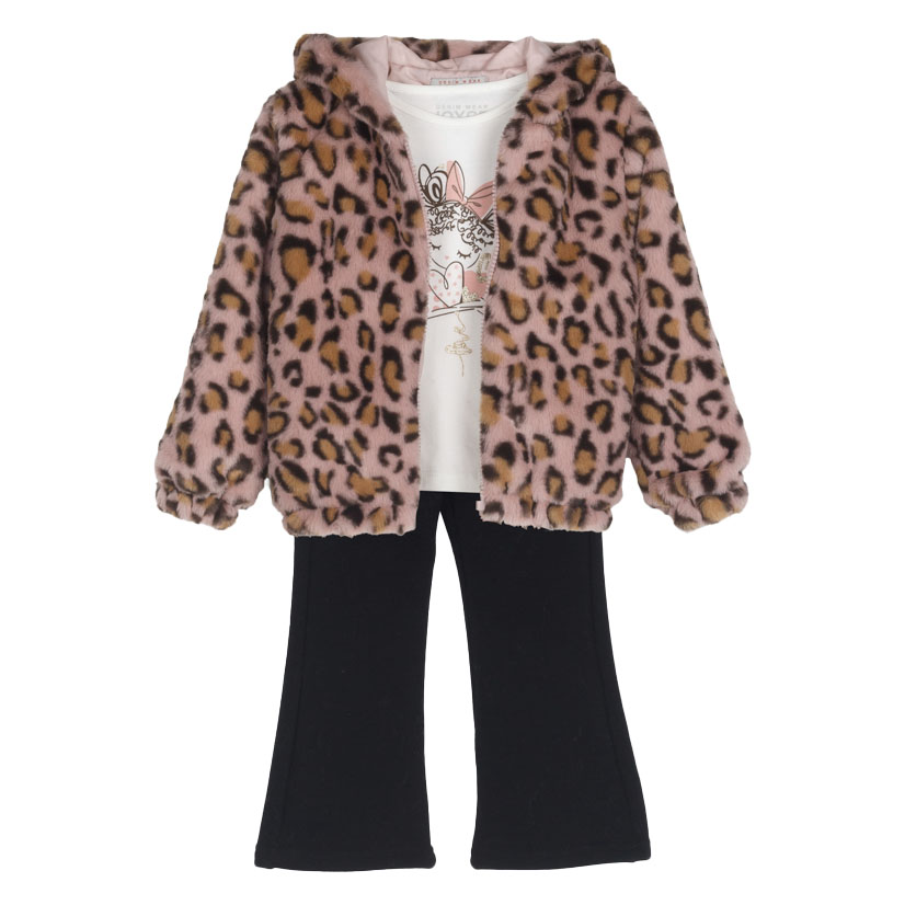 Αυτό το χαριτωμένο βρεφικό σετάκι για κορίτσι προσφέρει ζεστασιά και άνεση, ιδανικό για τις κρύες ημέρες. Το σετ αποτελείται από ένα γούνινο πανοφόρι με κουκούλα, που προσφέρει απαλότητα και προστασία από το κρύο, εξασφαλίζοντας ότι το μικρό σας θα είναι πάντα ζεστό και άνετο. Το κομψό πανοφόρι συνδυάζεται τέλεια με την μακριά φόρμα καμπάνα με χνούδι, η οποία προσφέρει άνεση και ελευθερία κινήσεων.