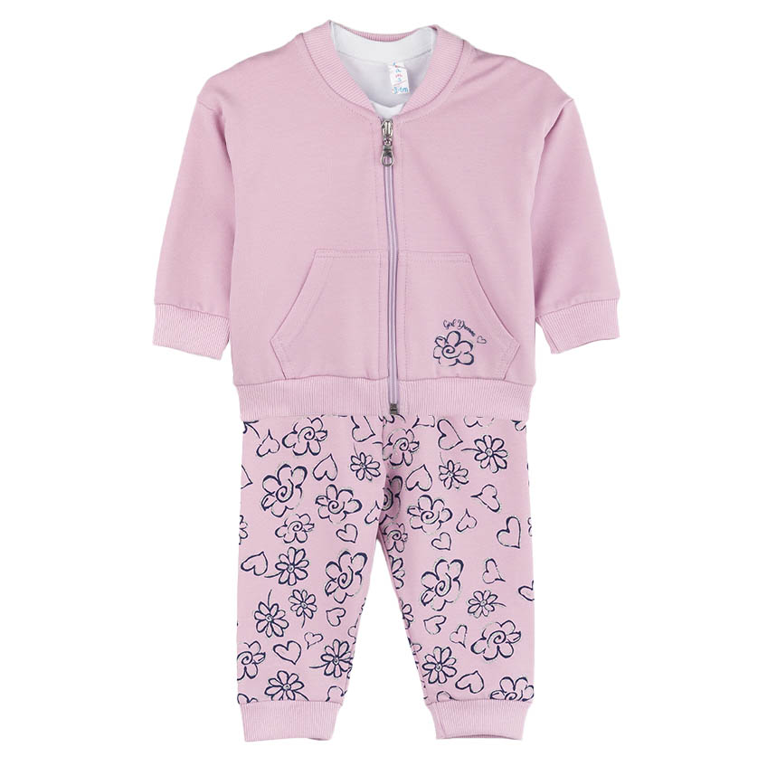Το βρεφικό βαμβακερό σετ 3 τεμαχίων για κορίτσια από την εταιρία Dreams by Joyce σε λιλά χρώμα είναι η ιδανική επιλογή για όλους τους μήνες του χρόνου. Αυτό το σετ προσφέρει άνεση, στυλ και πρακτικότητα στην καθημερινή ντουλάπα των παιδιών.