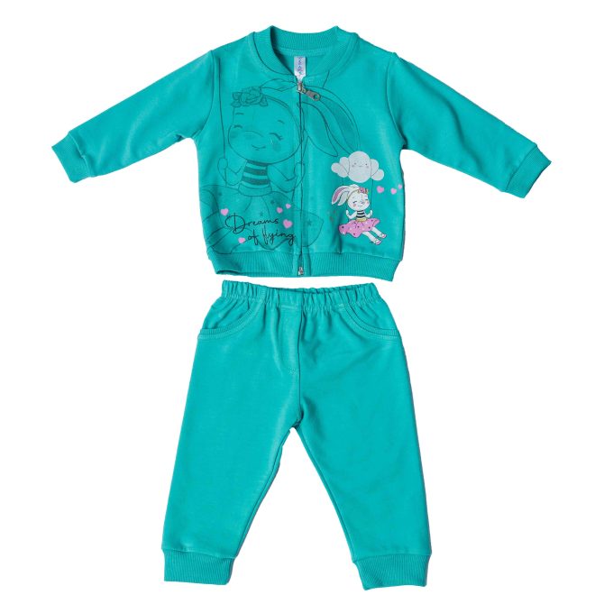 Το σετ περιλαμβάνει μια βαμβακερή ζακέτα χωρίς χνούδι η οποία προσφέρει άνετη εφαρμογή και μια βαμβακερή φόρμα με λάστιχο στο τελείωμα είναι ιδανική για χαλαρές στιγμές στο σπίτι.