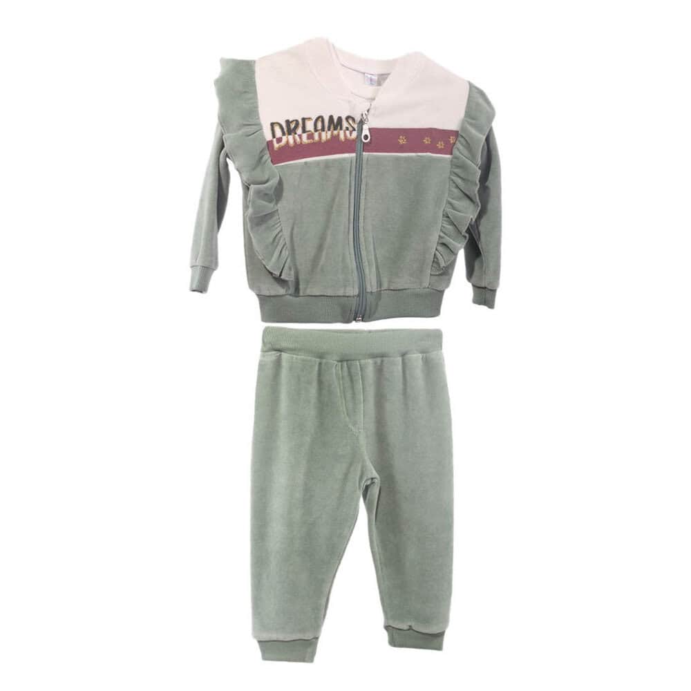Το σετ περιλαμβάνει μια βελούδινη ζακέτα χωρίς χνούδι η οποία προσφέρει άνετη εφαρμογή και επιτρέπει την ελεύθερη κίνηση των παιδιών. Ένα μακρυμάνικο βαμβακερό μπλουζάκι με κλιπς στο πάνω μέρος και μια βελούδινη φόρμα με λάστιχο στο τελείωμα είναι ιδανική για χαλαρές στιγμές στο σπίτι.