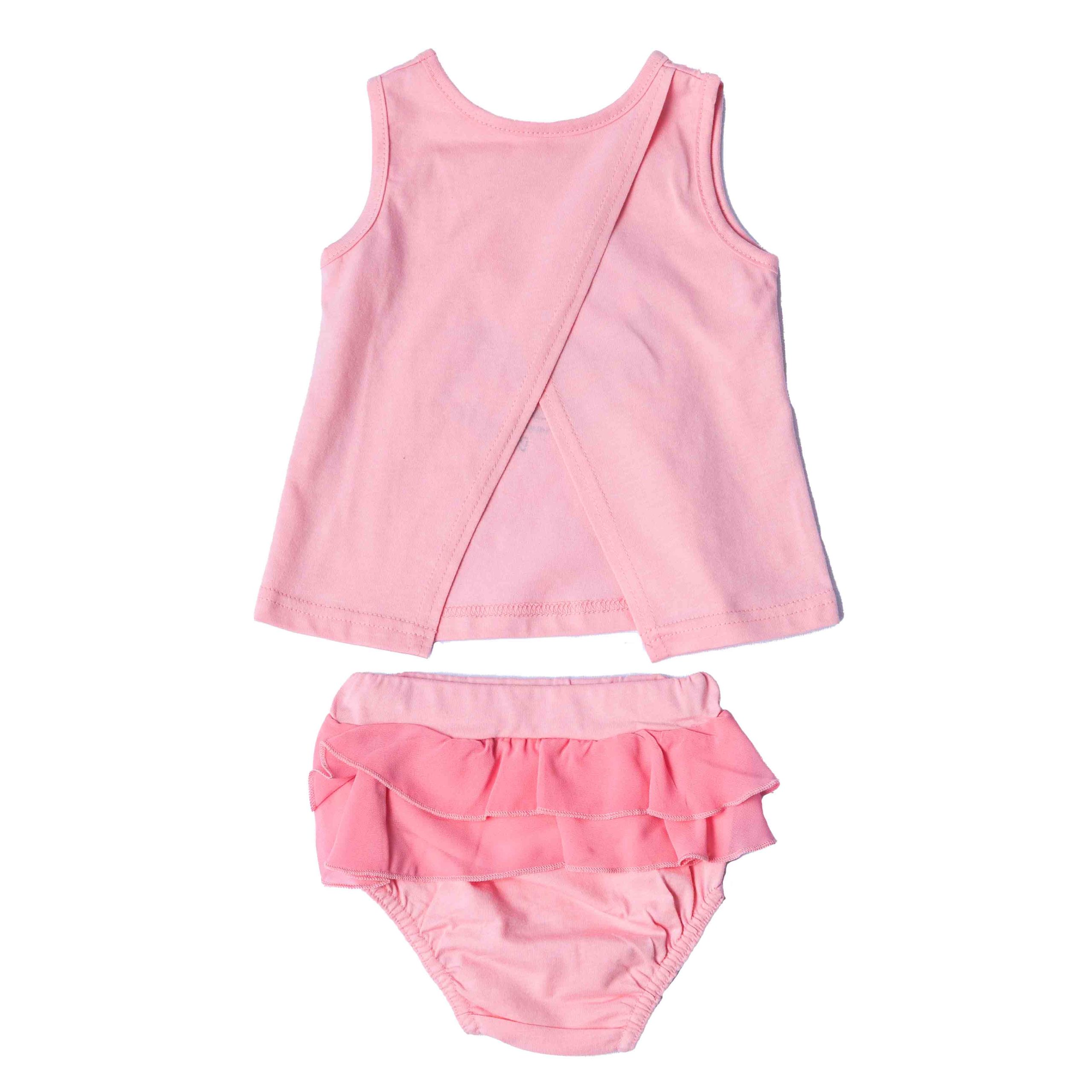 Αυτό το βαμβακερό βρεφικό σετάκι σε ροζ χρώμα είναι μια άνετη και κομψή επιλογή για τις καθημερινές εμφανίσεις του μωρού. Αποτελείται από αμάνικη μπλουζίτσα με χαριτωμένο τύπωμα στο μπροστινό μέρος, που χαρίζει παιχνιδιάρικη και γλυκιά διάθεση. Το σετ ολοκληρώνεται με βαμβακερό βρακάκι σε ζωηρό χρώμα, με ελαστική μέση για άνετη εφαρμογή και ελευθερία κινήσεων. Το απαλό ύφασμα είναι φιλικό προς το ευαίσθητο βρεφικό δέρμα, καθιστώντας το ιδανικό για όλες τις ώρες της ημέρας. Ιδανική επιλογή για άνεση και στιλ μαζί.