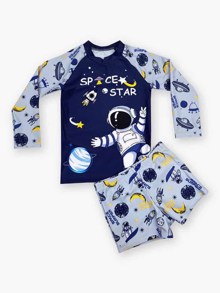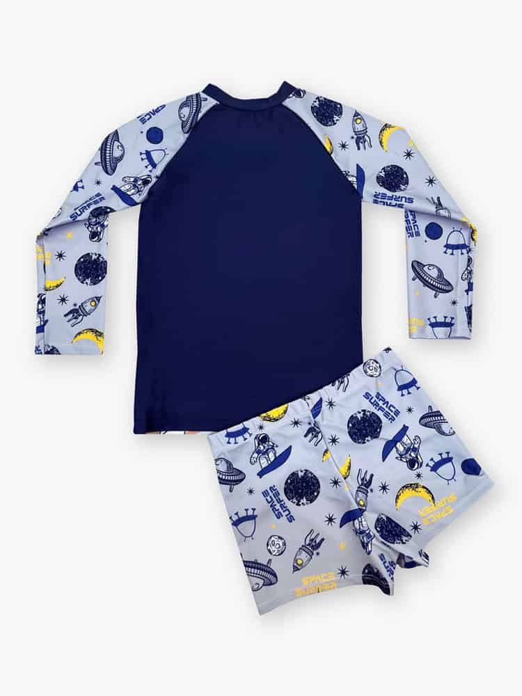 - Παιδικό σετ μαγιό μπλούζα και σορτς με αντιηλιακή προστασία και σχέδια space star.