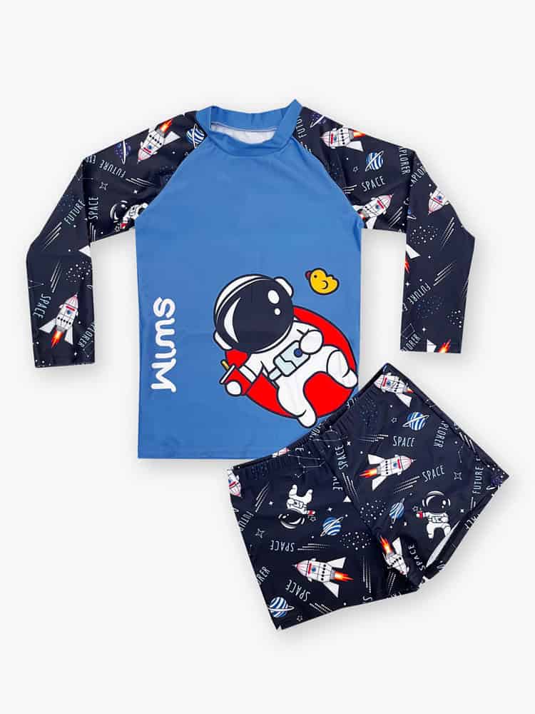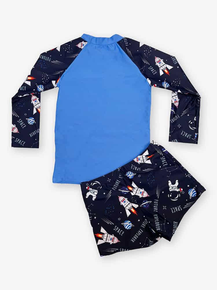 - Παιδικό σετ μαγιό μπλούζα και σορτς με αντιηλιακή προστασία και σχέδια space star.