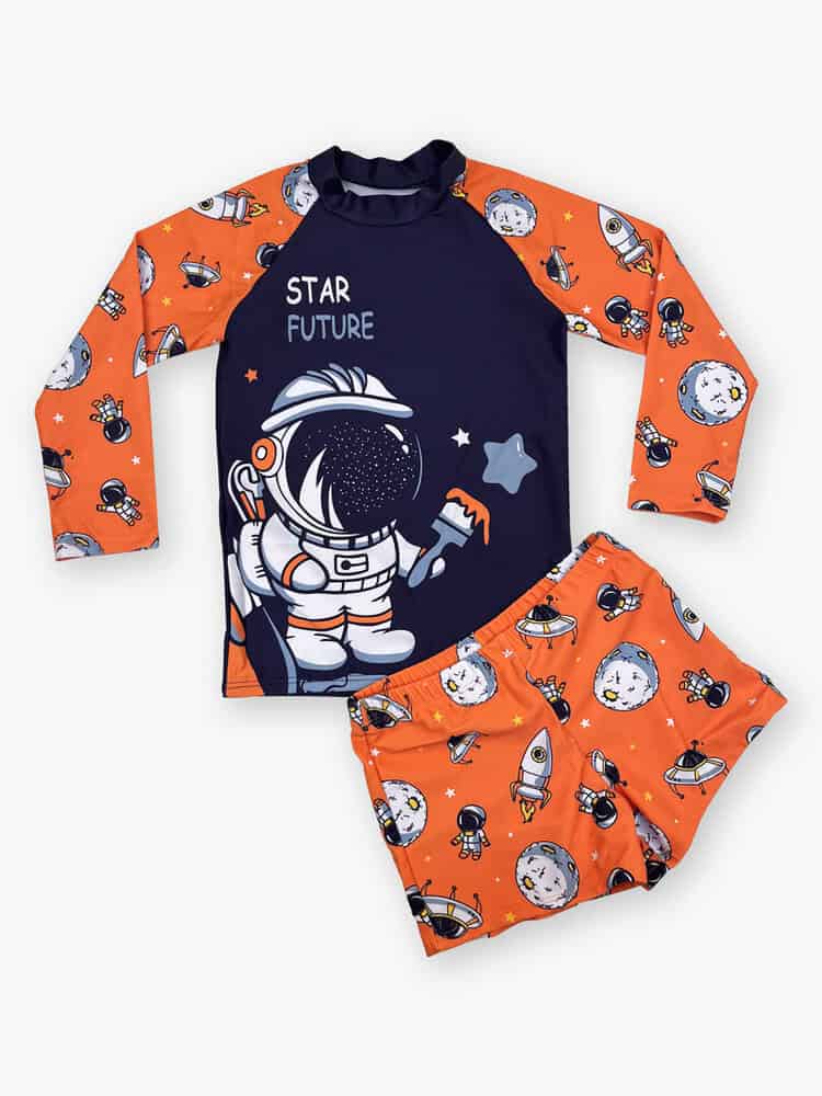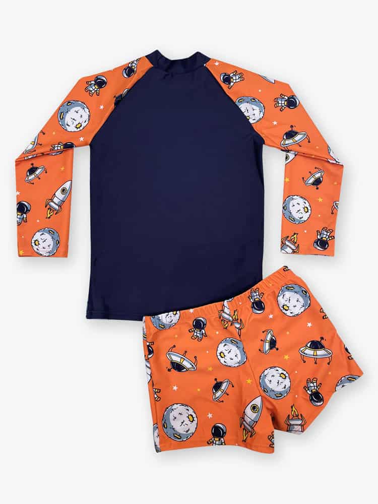 - Παιδικό σετ μαγιό μπλούζα και σορτς με αντιηλιακή προστασία και σχέδια space star.